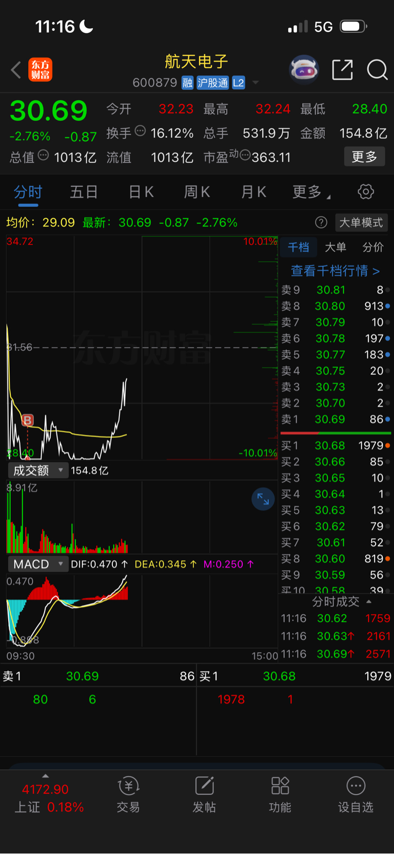 $航天电子(SH600879)$ 狱友们好