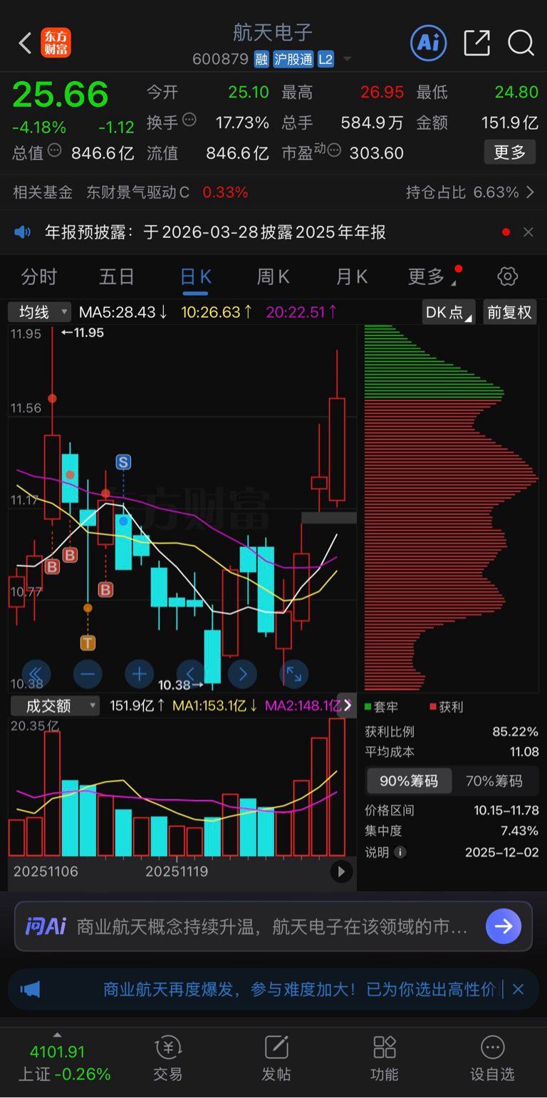 $航天电子(SH600879)$ 11月初 通过个人对国家政策解读,用AI选了一票股 最终买的你 可惜我拿不住啊 等你这次回调企稳再找机会进吧