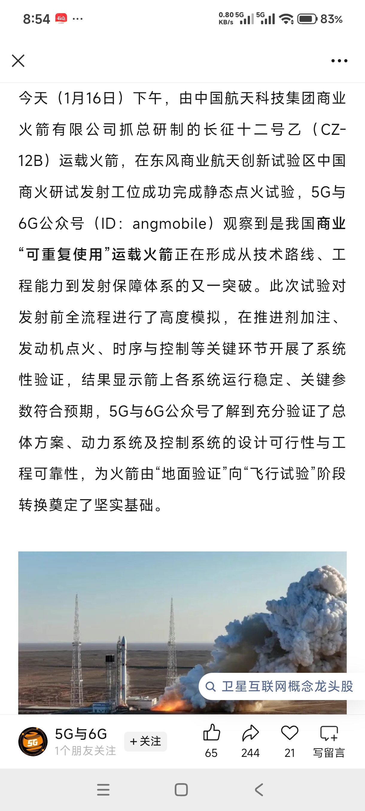 $航天电子(SH600879)$ 这个挺牛逼啊,起飞了吧