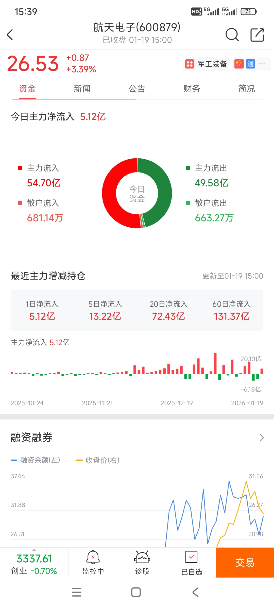 $航天电子(SH600879)$ 主力资金净流入5.3亿
