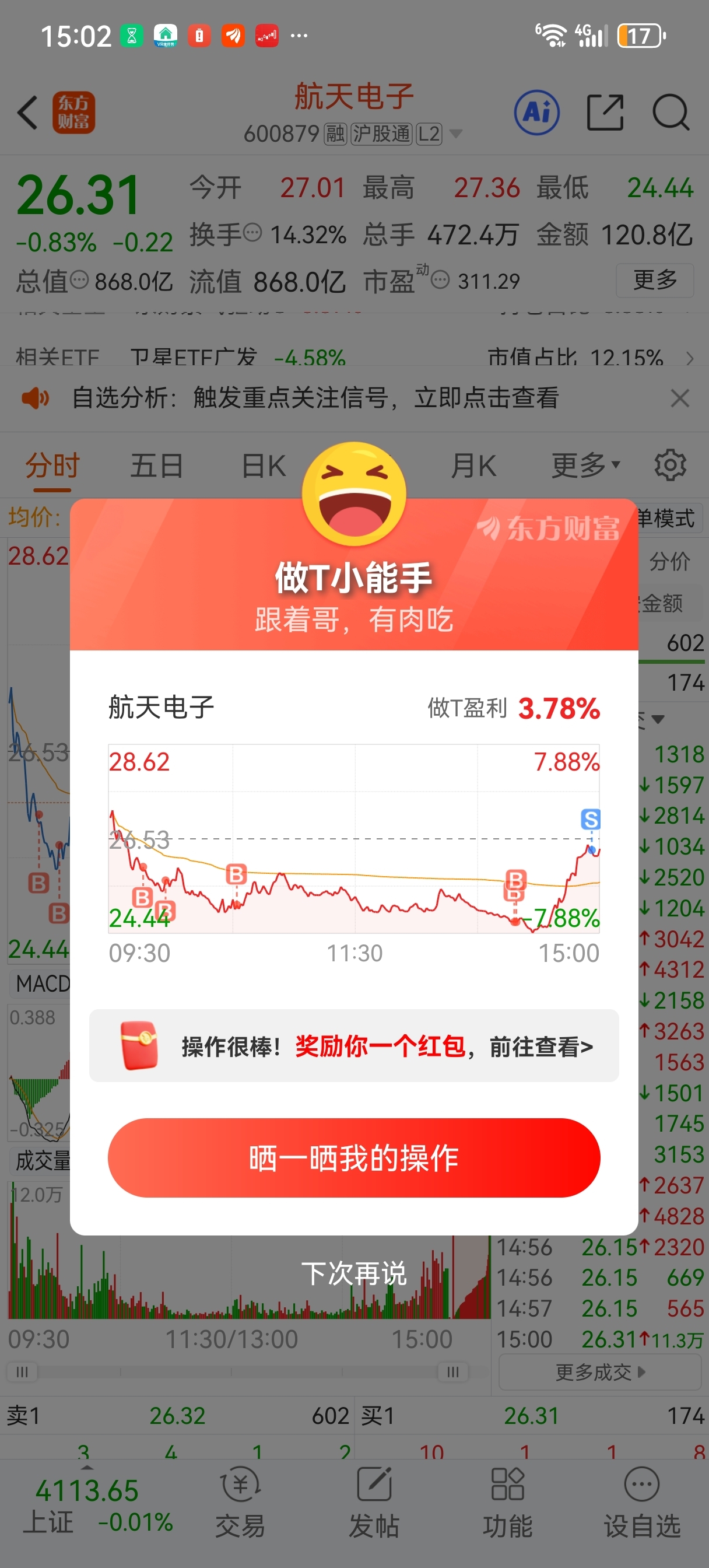 $航天电子(SH600879)$ 日内洗盘,谁是真龙谁是杂毛一览无余。今天割的就是嫩韭菜,亏钱活该。