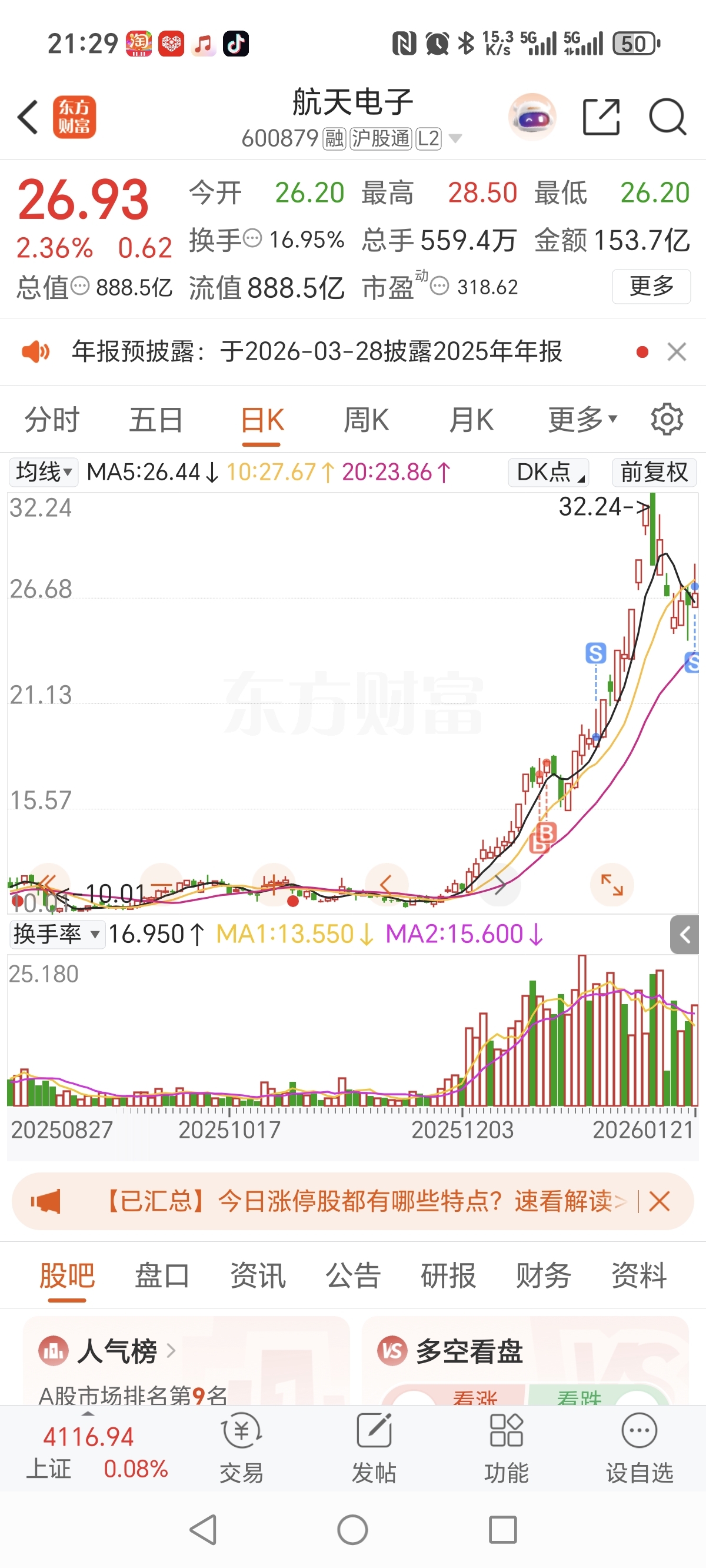 $航天电子(SH600879)$ 终于忍不住了尾盘两个多点走了