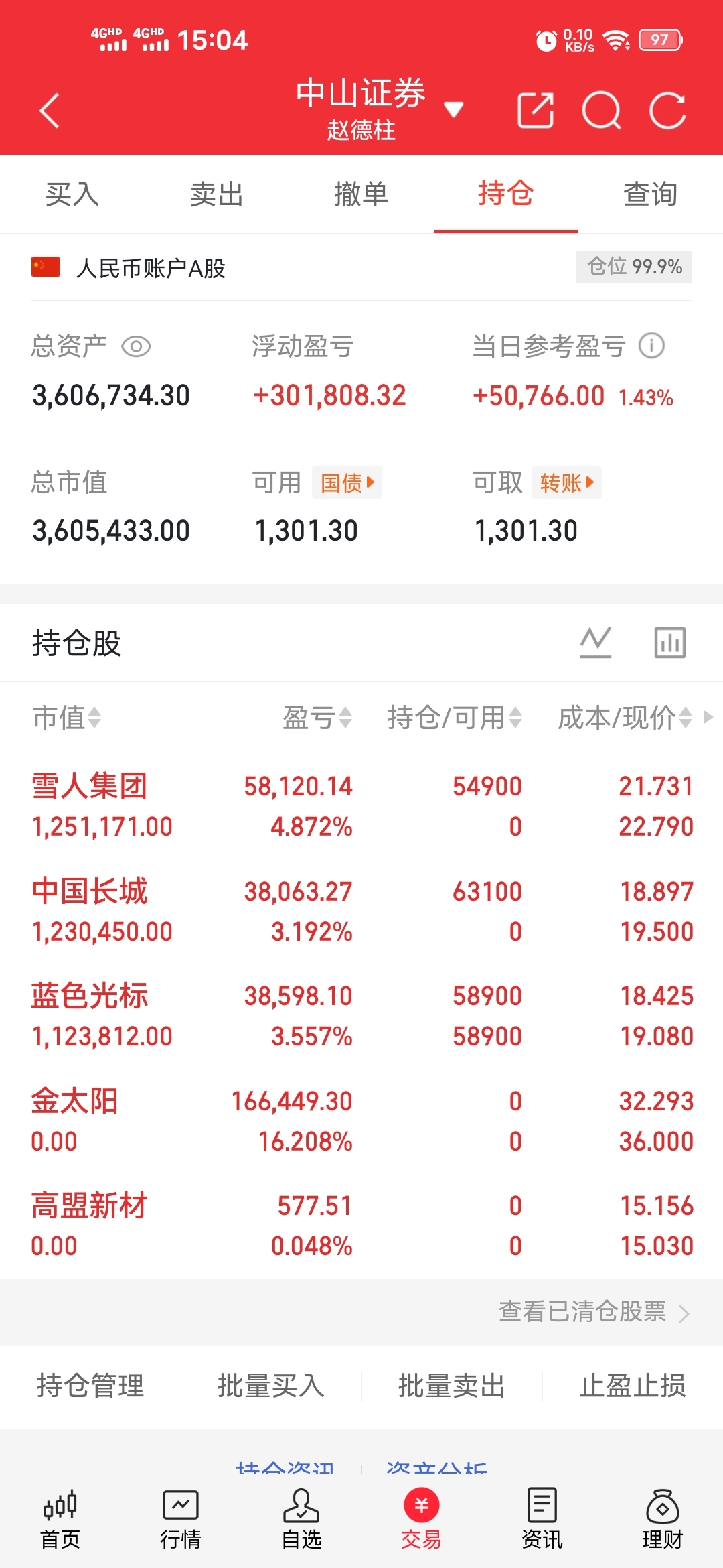 持有:蓝色光标卖出:金太阳,高盟新材买入:雪人集团,中国长城郑重声明:个人操作,