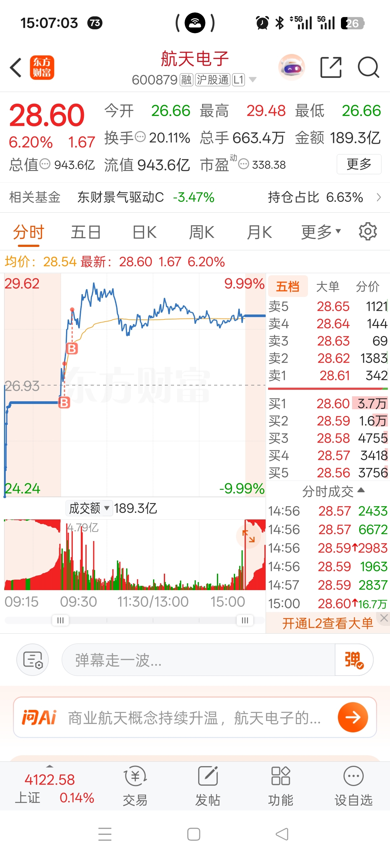 $航天电子(SH600879)$ 作为情绪先锋,只需要一直走趋势就可以了,电子不倒,航天不倒