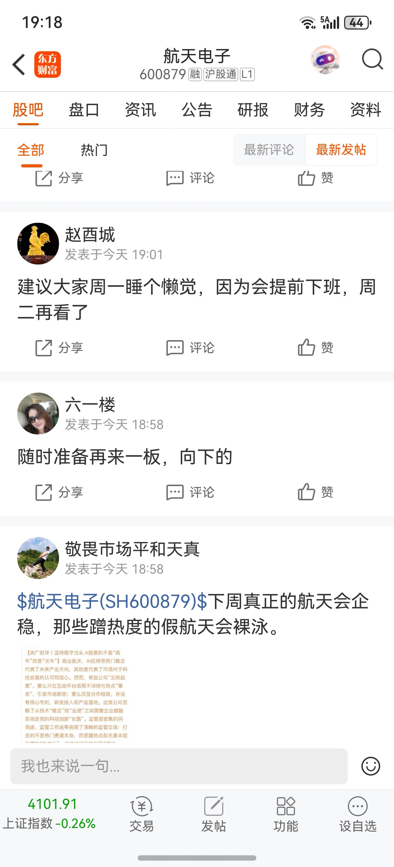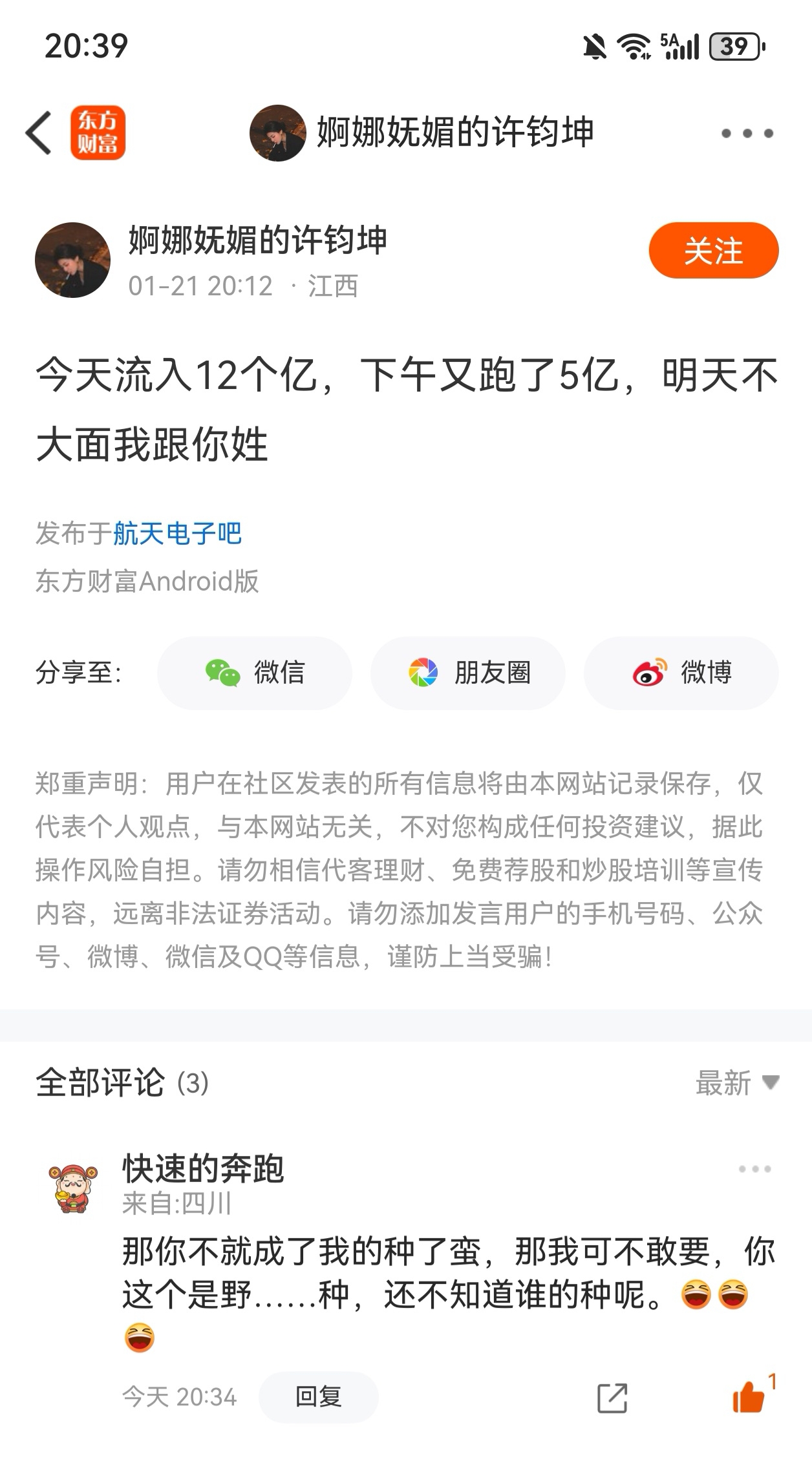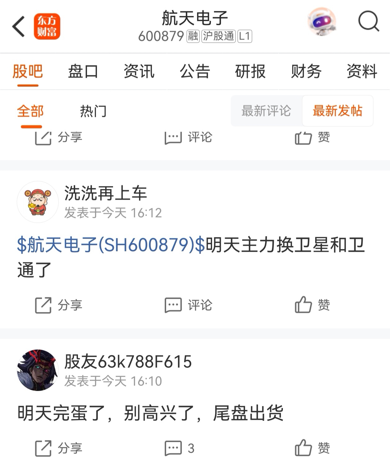 温馨提示: 1.根据《证券法》规定,禁止编造、传播虚假信息或者误导性信息,扰乱证券市场;2.用户在本社区发表的所有资料、言论等仅代表个人观点,与本网站立场无关,不对您构成任何投资建议。用户应基于自己的独立判断,自行决定证券投资并承担相应风险。《东方财富社区管理规定》