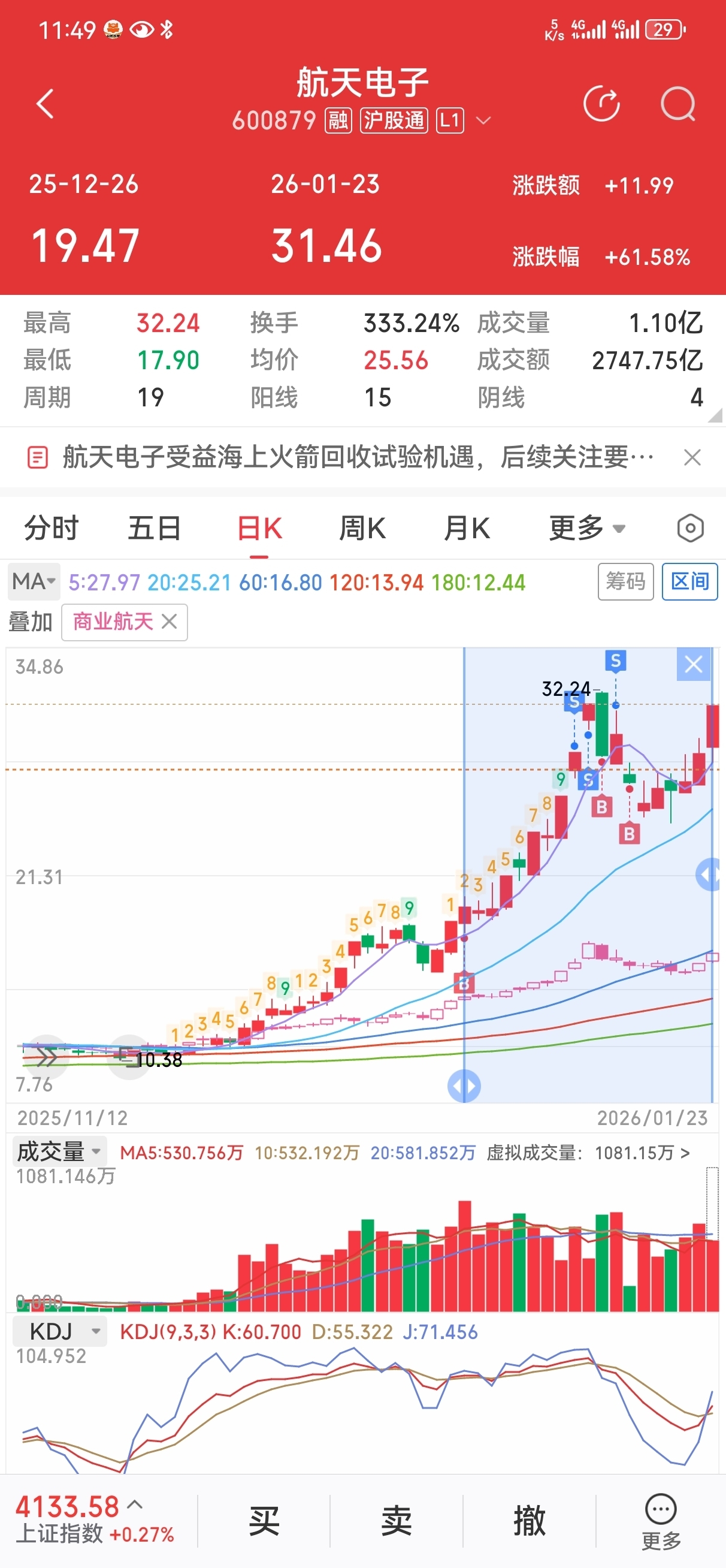 $航天电子(SH600879)$ #炒股日记# 总算没踏空,也没有卖飞,很满意了
