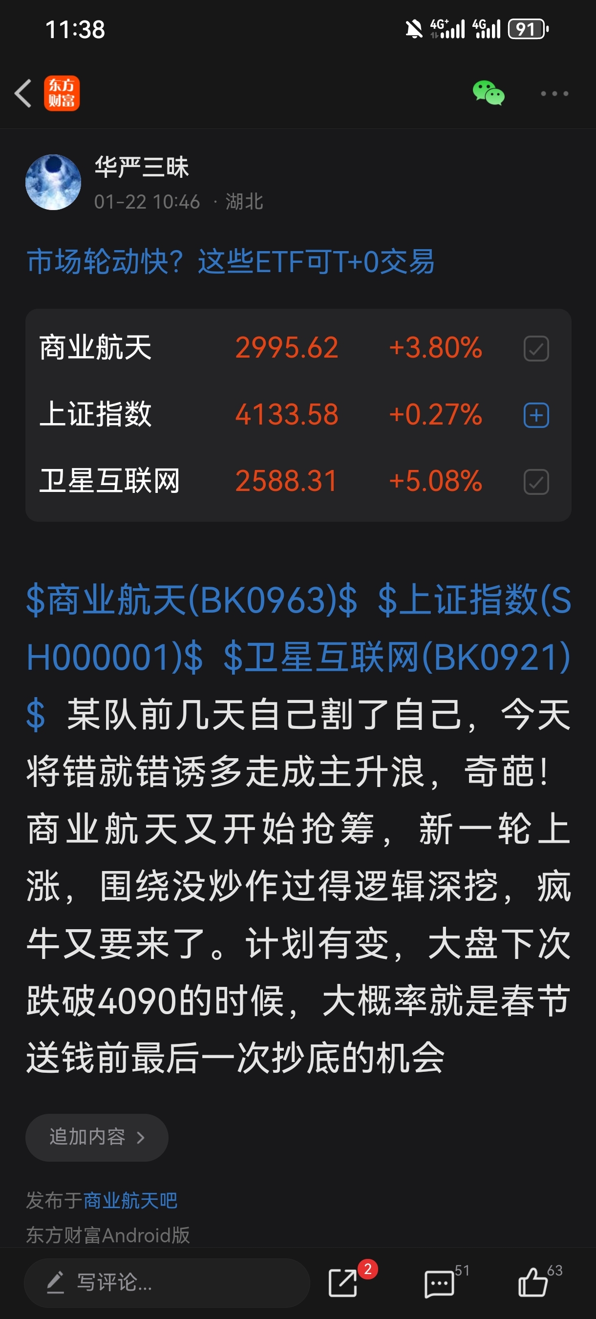 昨天上午我就分析商业航天新一轮上涨已经开始,现在一看,昨天在底下喷我的踏空韭菜很自觉的删了评论,今天板块暴力反弹再次验证了我的言论,其实理由很简单,大盘已经10年没有过这么高的位置和量能,某队这一批操盘手只会照本宣科按高开低走冲高回落去诱多发套,完全没有能力和经验应对慢牛背景下的增量市场,这就导致去年四季度散户叫苦连天,证券和消费被玩坏了沦为牛市弃子,某队亲手把韭菜们杀跌后的廉价筹码分了一半给外资,留意过就会发现,从去年十月商业航天就开始被大量外资布局,十二月初第一批上涨的前排龙头龙虎榜上都是外资的席位,也就是说其实我们的主线是外资发掘了逻辑带头,然后游资接力做多,最后散户合力拉升。