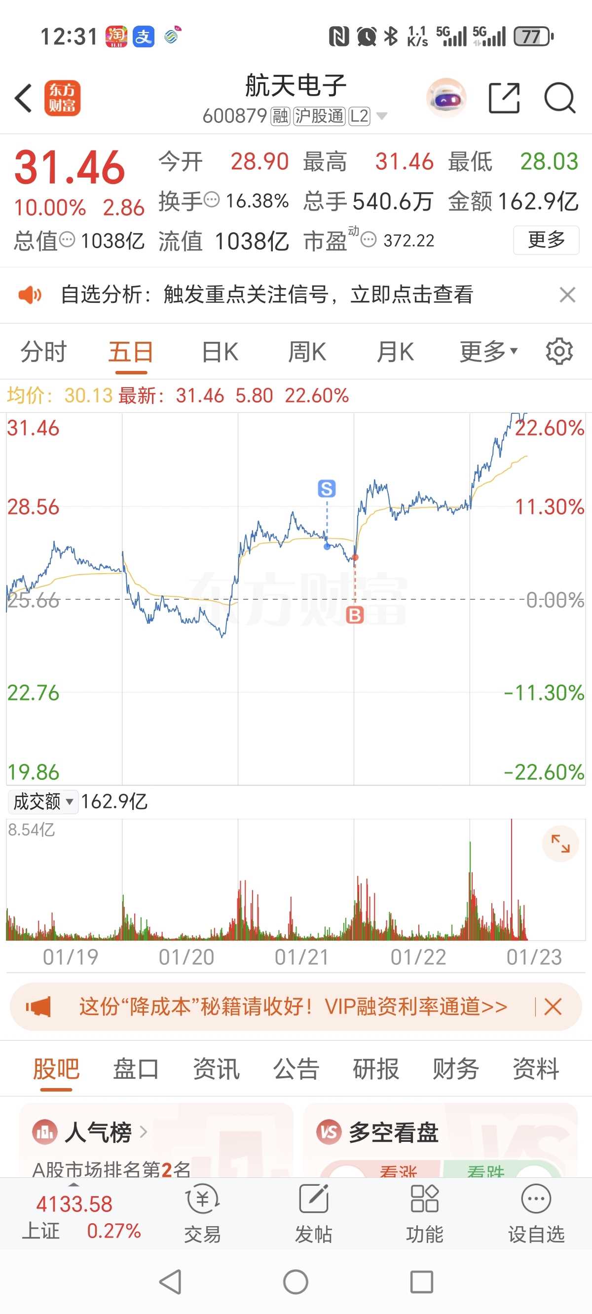 $航天电子(SH600879)$ 我是一天都不敢空仓