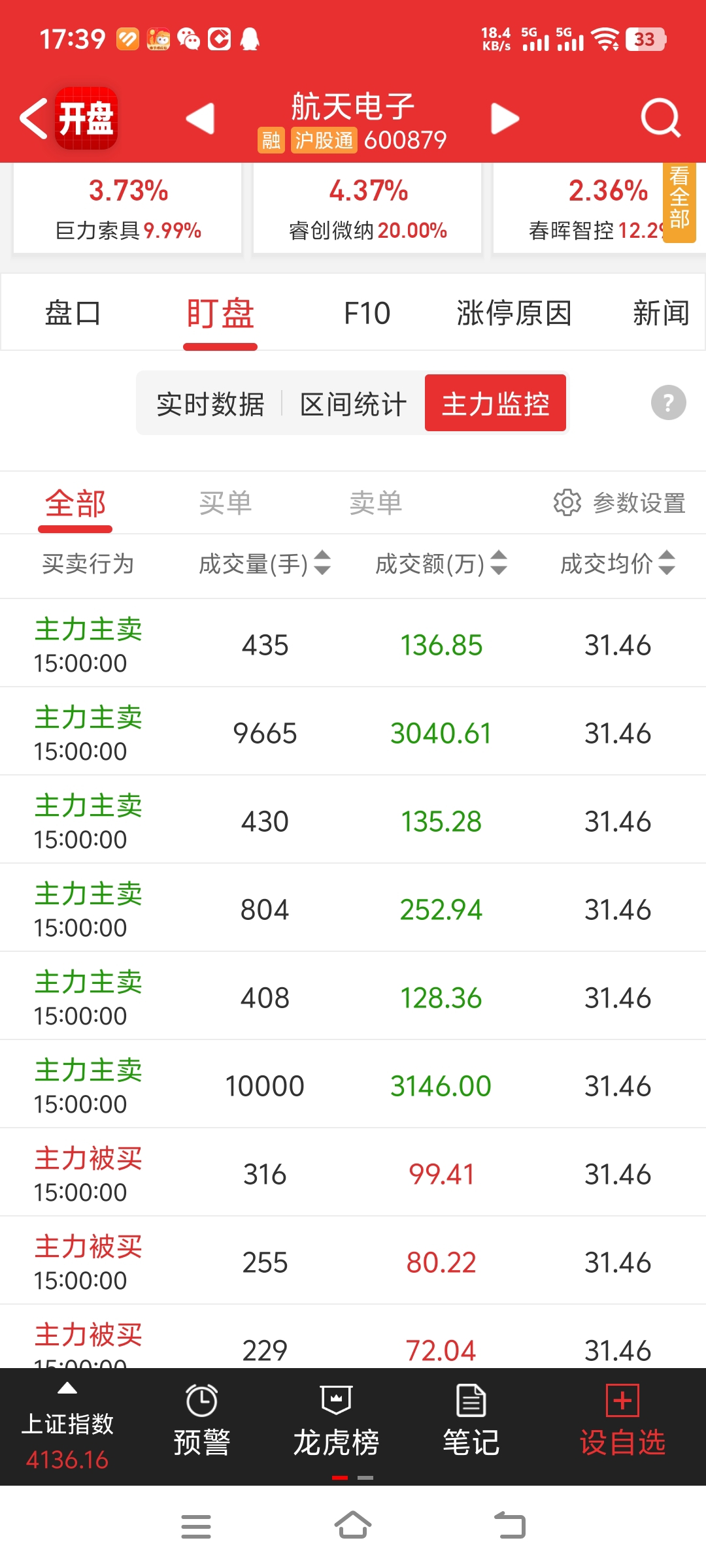 $航天电子(SH600879)$ 大家看看这是今天收盘卖出了的。