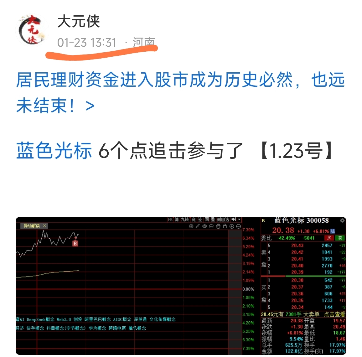 郑重声明:用户在财富号/股吧/博客等社区发表的所有信息(包括但不限于文字、视频、音频、数据及图表)仅代表个人观点,与本网站立场无关,不对您构成任何投资建议,据此操作风险自担。请勿相信代客理财、免费荐股和炒股培训等宣传内容,远离非法证券活动。请勿添加发言用户的手机号码、公众号、微博、微信及QQ等信息,谨防上当受骗!
