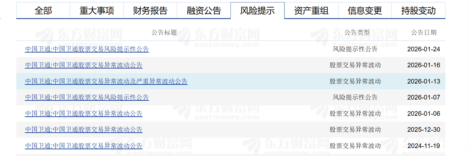 上一次,1.最先提示风险的是中国卫星,2025年12月30日公告提示,提示完继续涨