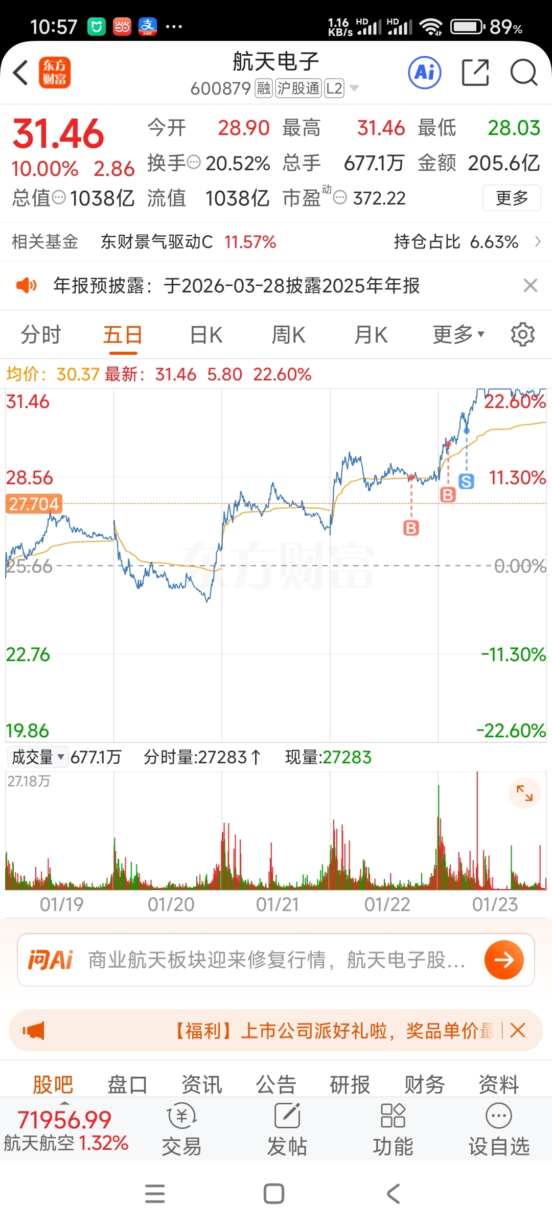 今天不及预期,果断离场,盘活资金,增仓了航天电子
