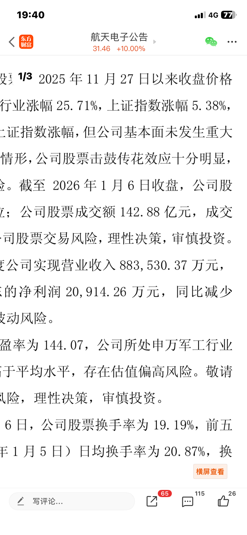 $航天电子(SH600879)$ 为什么公司1月7日的公告也说了同样的击鼓传花,后面3个涨停,这次这么都说跌停