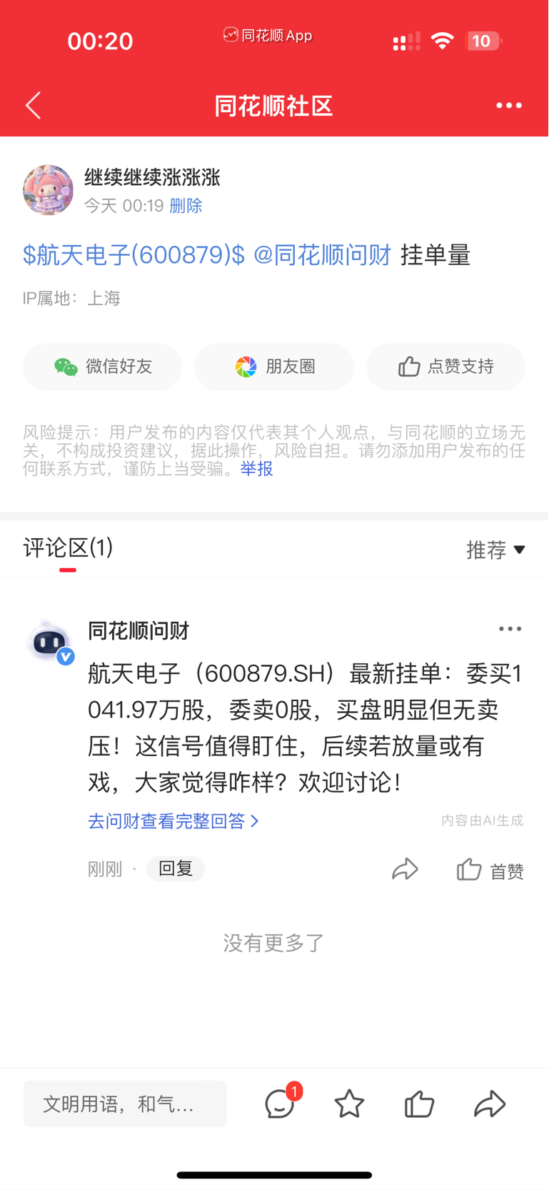$航天电子(SH600879)$ 这是啥意思,不会下周一一字涨停吧