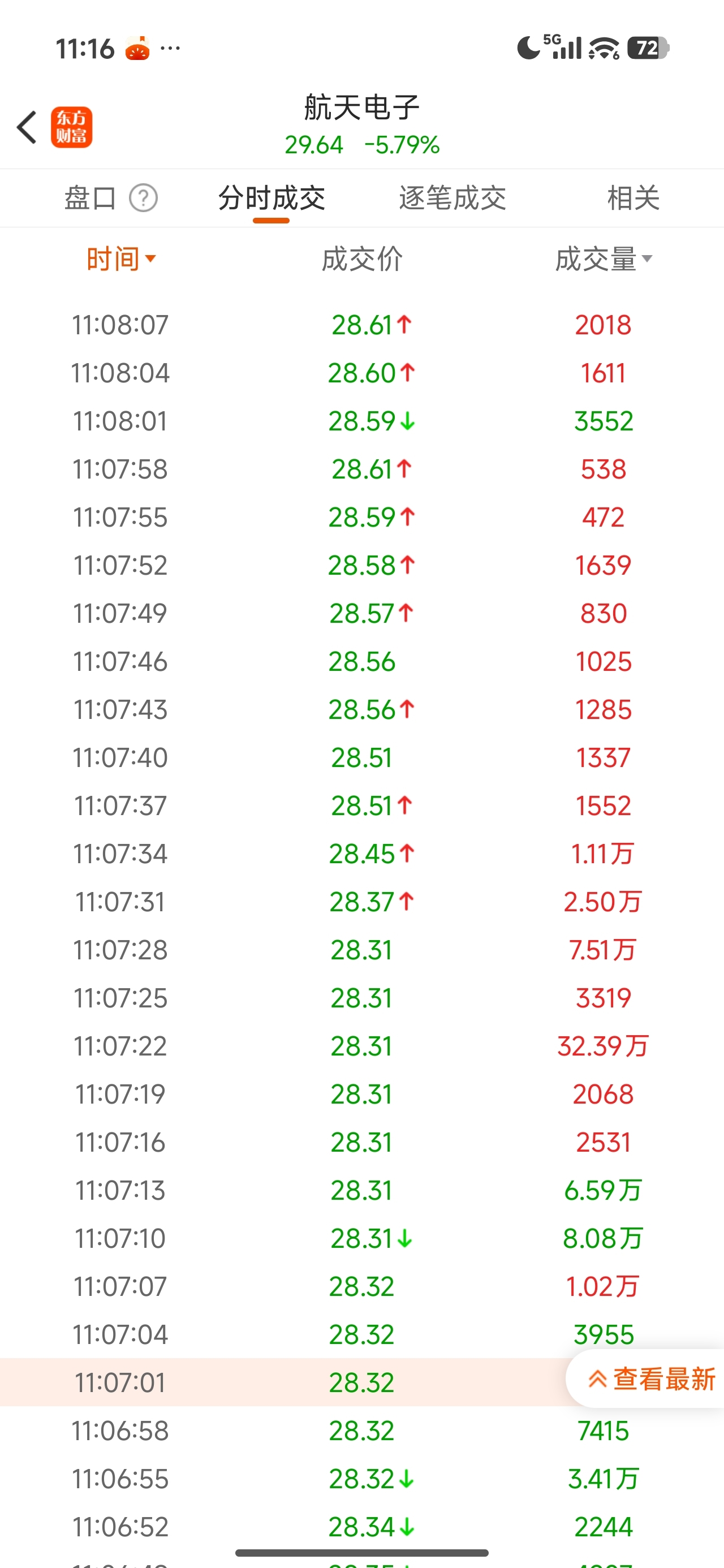 $航天电子(SH600879)$ 10s吃40w手