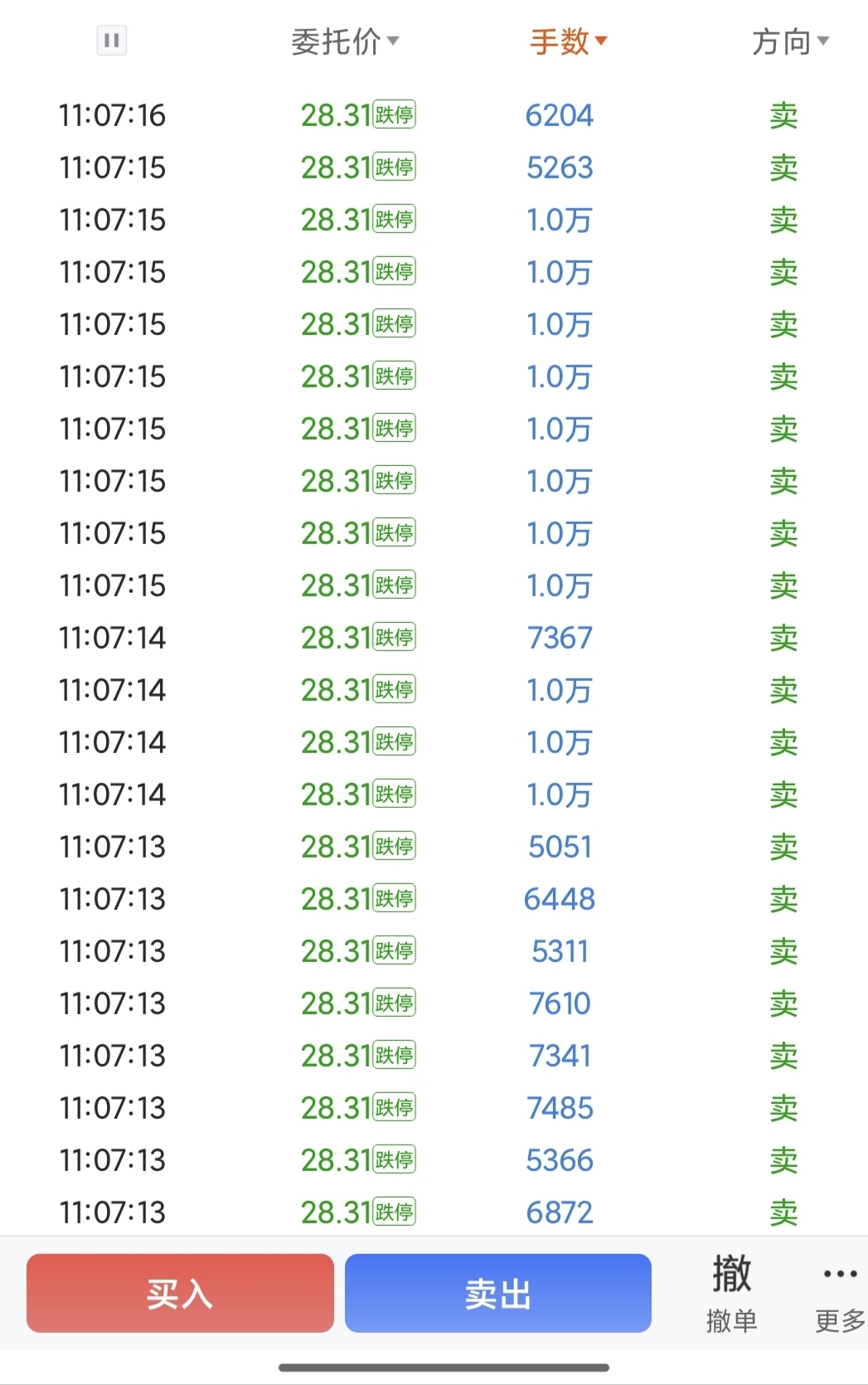 为什么跌停板上委托的大买单,东财的level2不显示出来,请高手解释一下