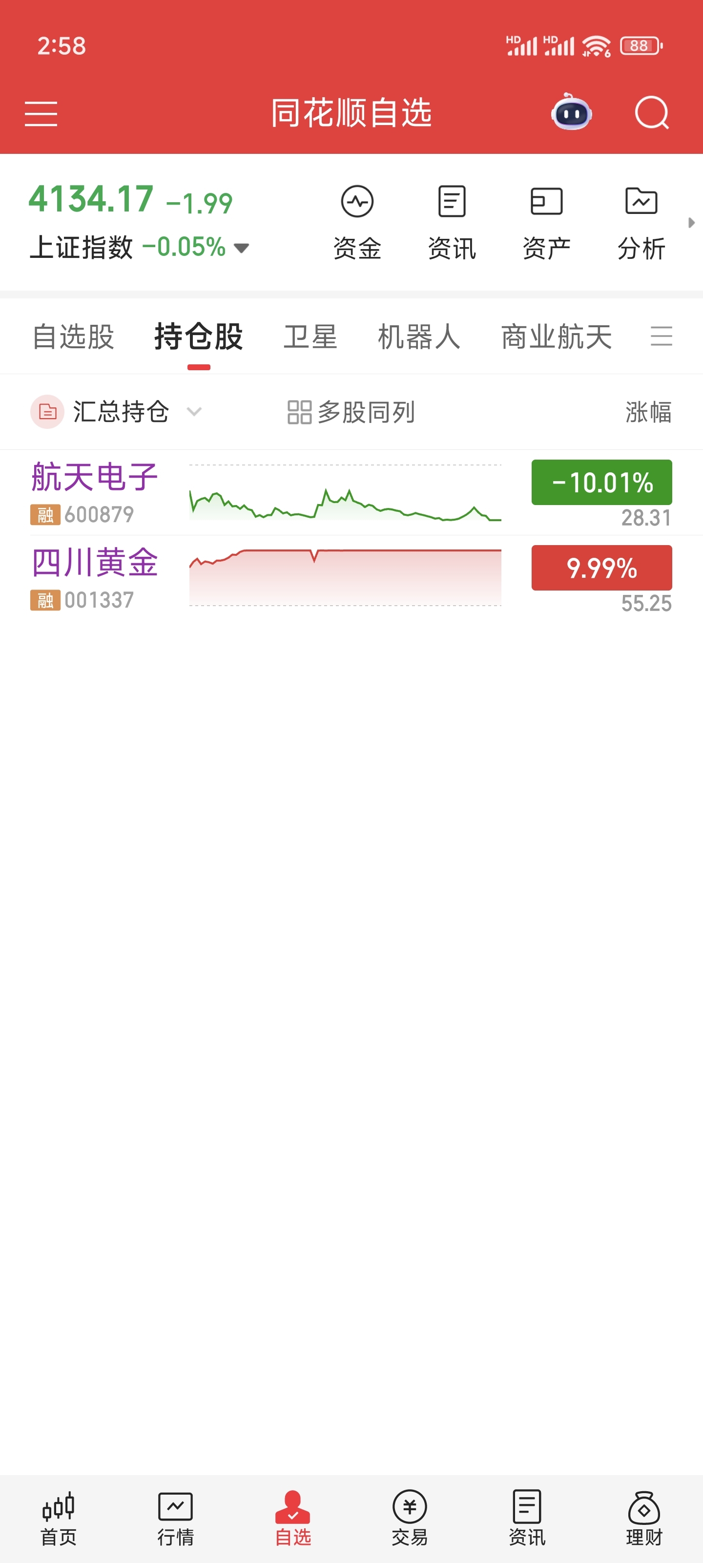 明天清仓。不再信商业航天了。全部买黄金。变相亏4000等于难受