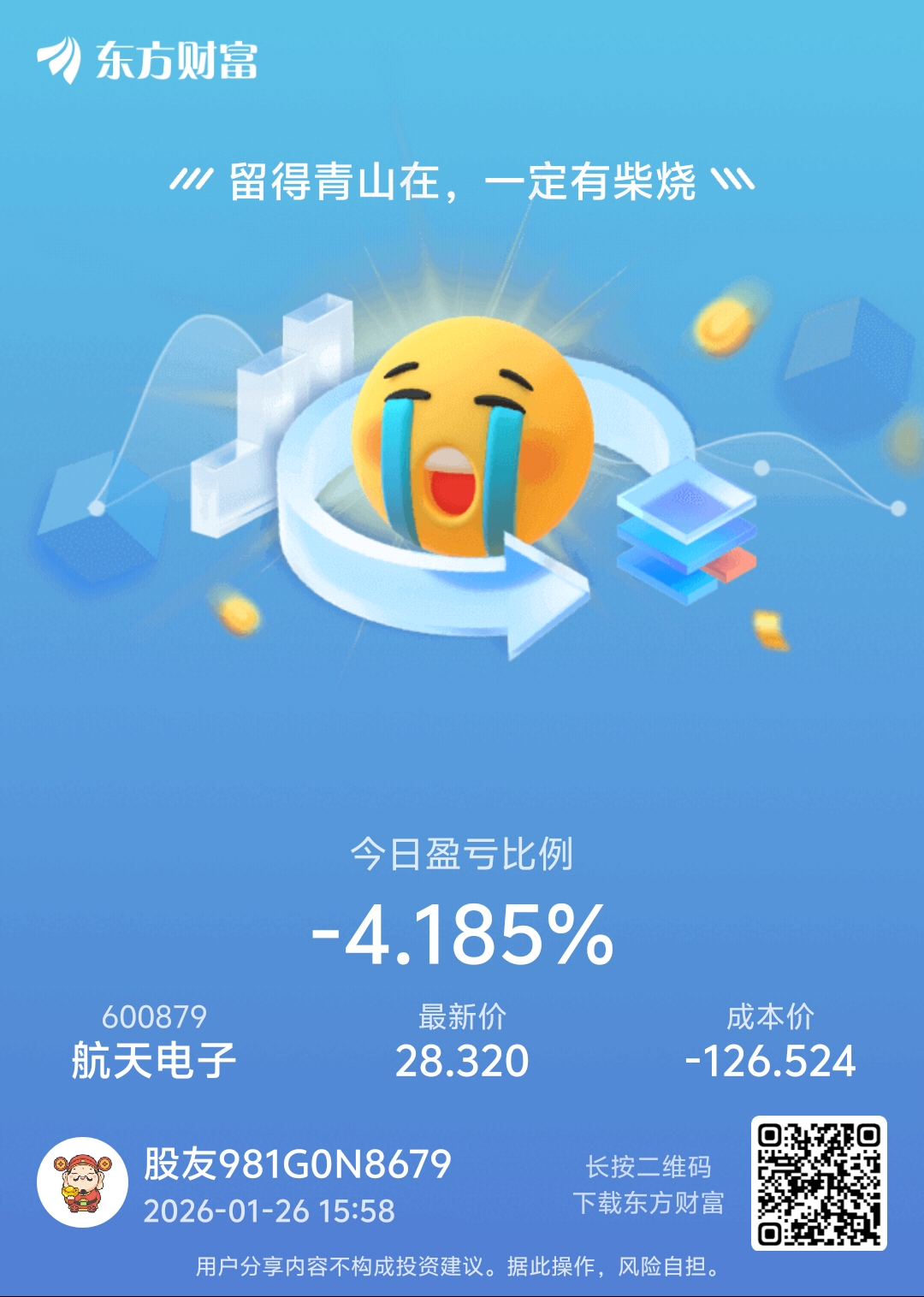 温馨提示: 1.根据《证券法》规定,禁止编造、传播虚假信息或者误导性信息,扰乱证券市场;2.用户在本社区发表的所有资料、言论等仅代表个人观点,与本网站立场无关,不对您构成任何投资建议。用户应基于自己的独立判断,自行决定证券投资并承担相应风险。《东方财富社区管理规定》