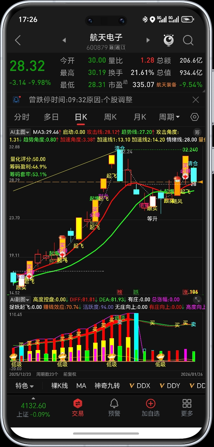 $航天电子(SH600879)$ 今天这个调整你怎么看?出来观望还是抄底五日线?明天破28情绪线会不会恐慌出逃?
