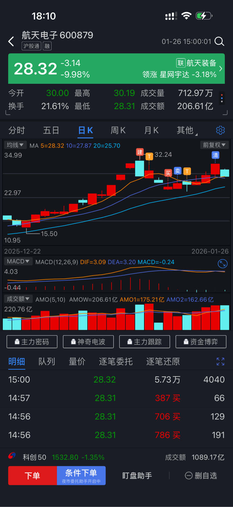 $航天电子(SH600879)$ 等回调到位,我再杀入
