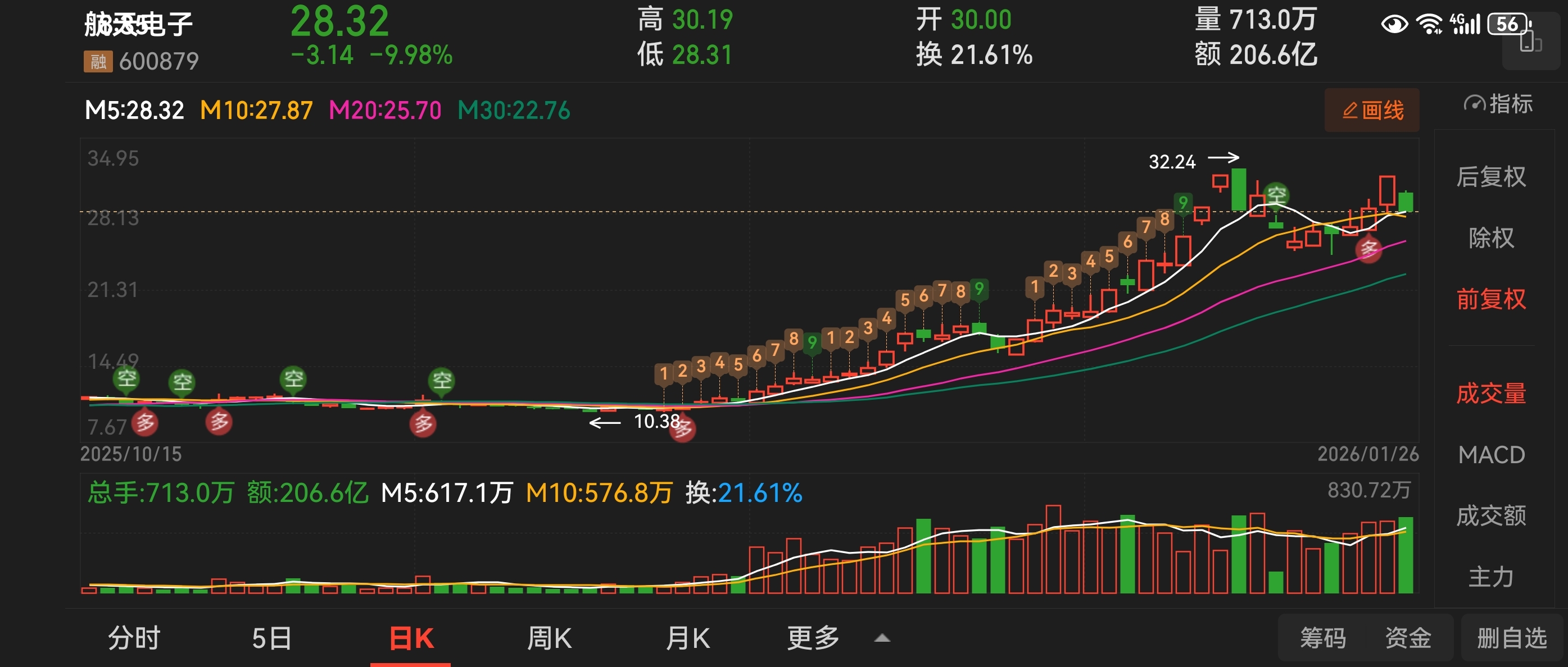$航天电子(SH600879)$ 周日提示了双头嫌疑,果不其然应验了,不过回调一下也还好!个人认为后续不会直接按死,等待发酵,震荡行情还是有机会的!