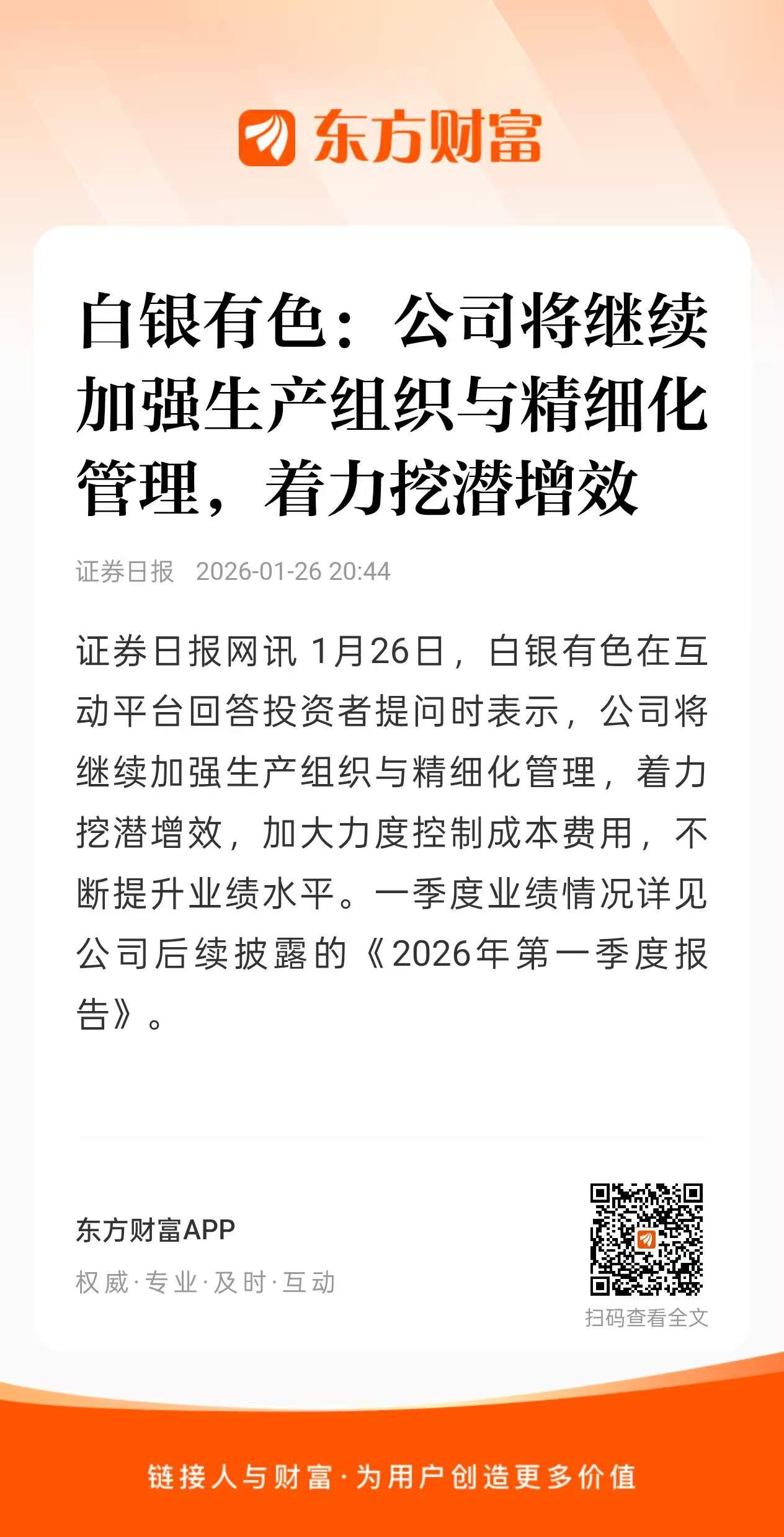 $航天电子(SH600879)$ 看看人家白银有色的回复?除非航天电子就怕被查出来根本没产品财务也造假