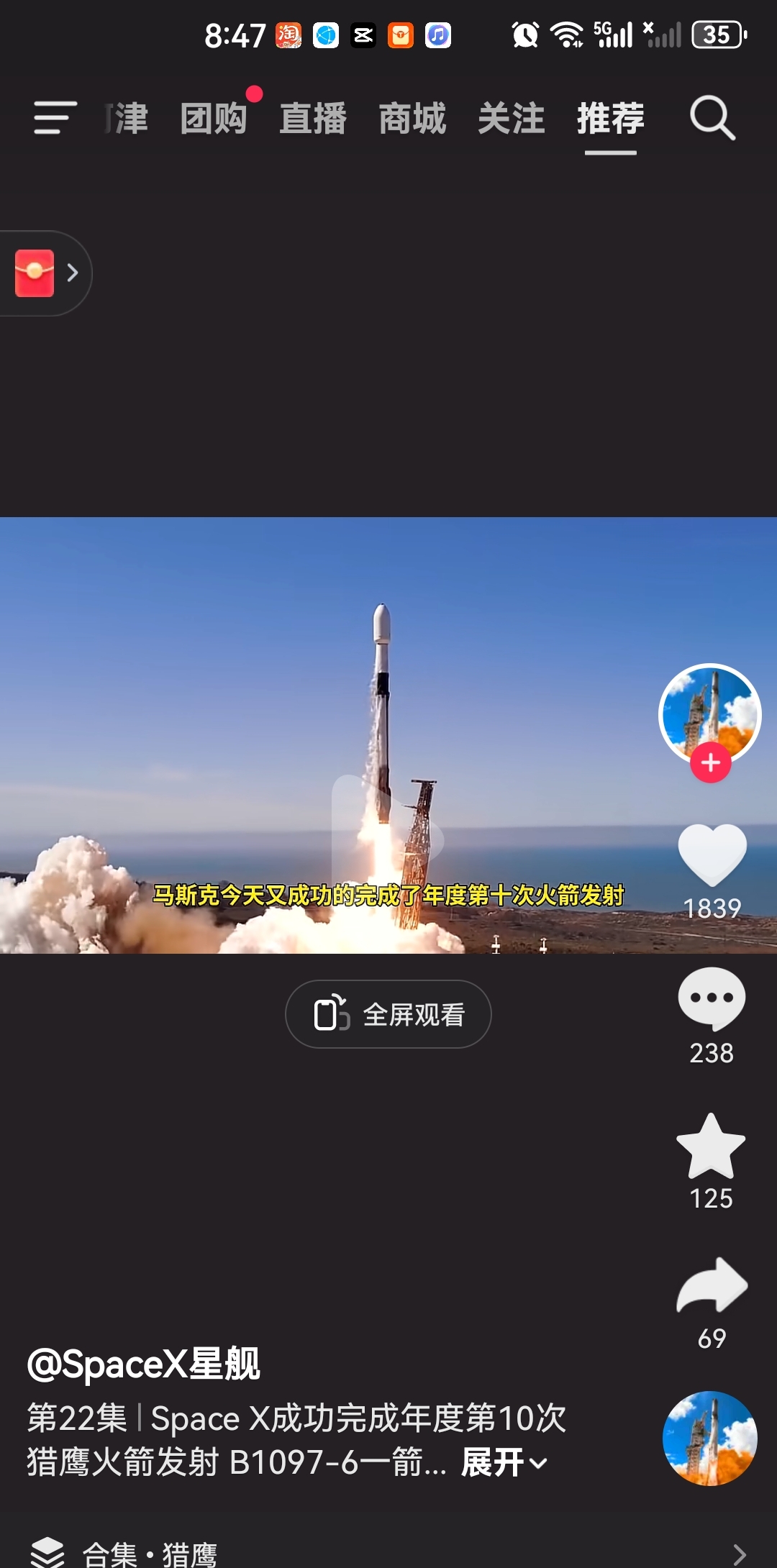 北京时间1月26日,SpaceX成功完成年度第10次猎鹰火箭发射B1097-6一