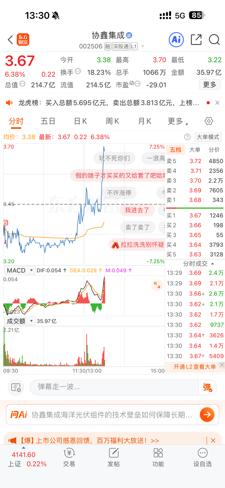 温馨提示: 1.根据《证券法》规定,禁止编造、传播虚假信息或者误导性信息,扰乱证券市场;2.用户在本社区发表的所有资料、言论等仅代表个人观点,与本网站立场无关,不对您构成任何投资建议。用户应基于自己的独立判断,自行决定证券投资并承担相应风险。《东方财富社区管理规定》