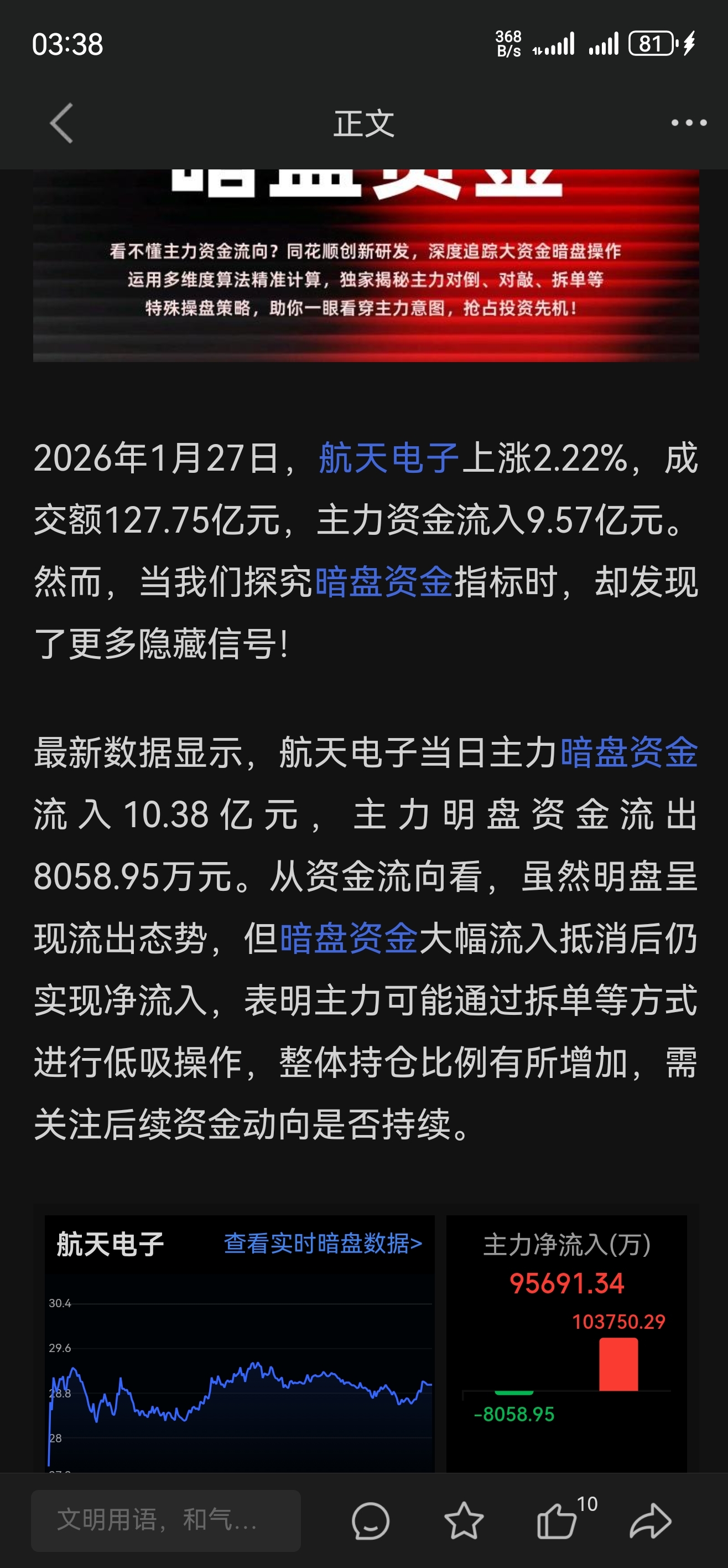 $航天电子(SH600879)$ 暗盘流入9个多亿,每天涨5 6个点吧