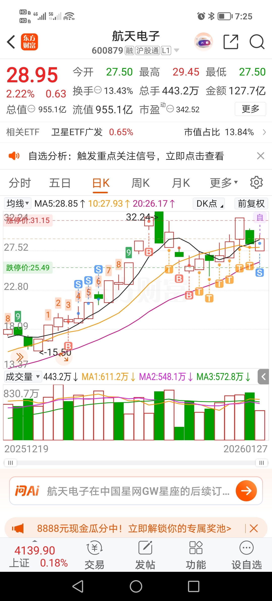 $航天电子(SH600879)$ 底部满仓,至今亏2W