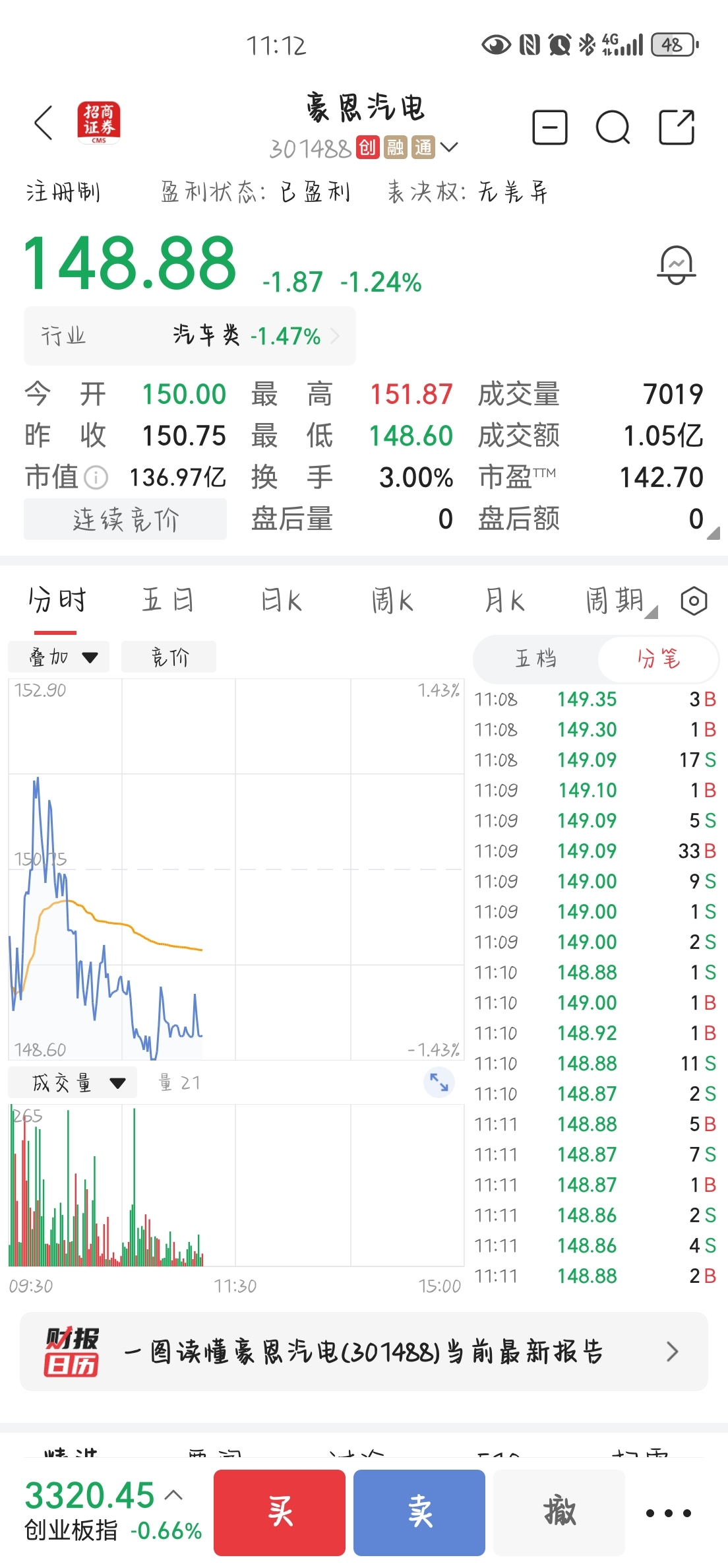 $航天电子(SH600879)$ $豪恩汽电(SZ301488)$ 哈哈哈,这只票真的有意思,一天才7000手交易