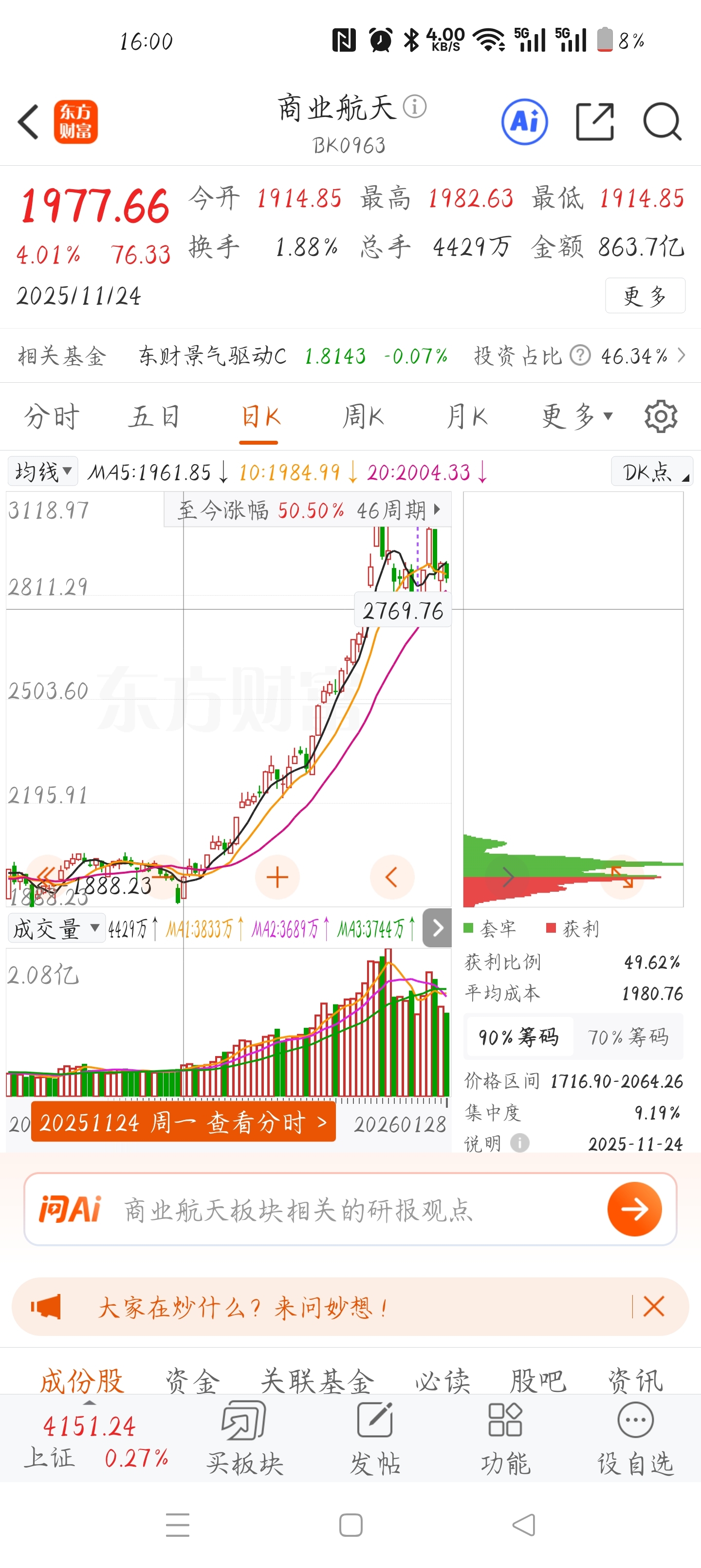 商业航天板块从启动开始到最高点两个月都不超过60个点就开始打压,贵金属板块短短的
