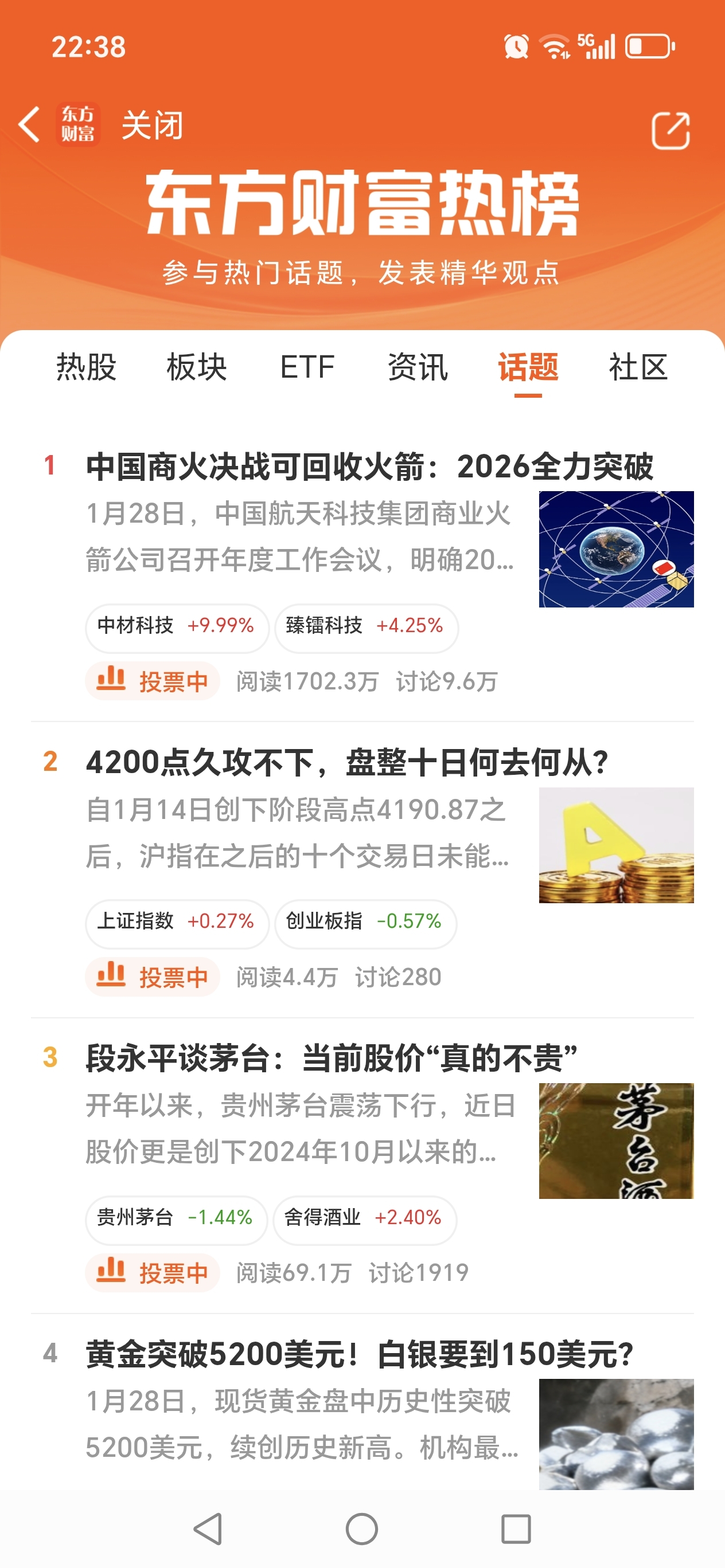 $航天电子(SH600879)$ 说的再多也没用,明天不涨五个点,走人,没有意思,也没兴趣玩什么金属,留点利润过年吧,你是要发展商业航天也好,击鼓传花也好,就看明天。