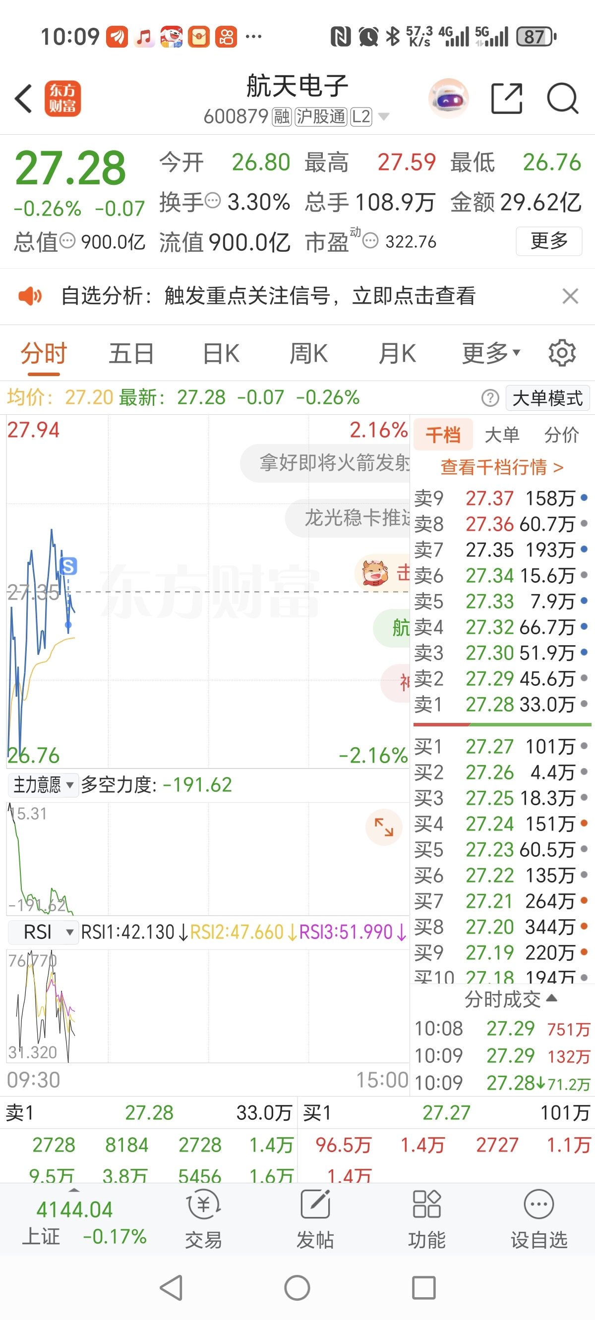 $航天电子(SH600879)$ 电子已费 走了