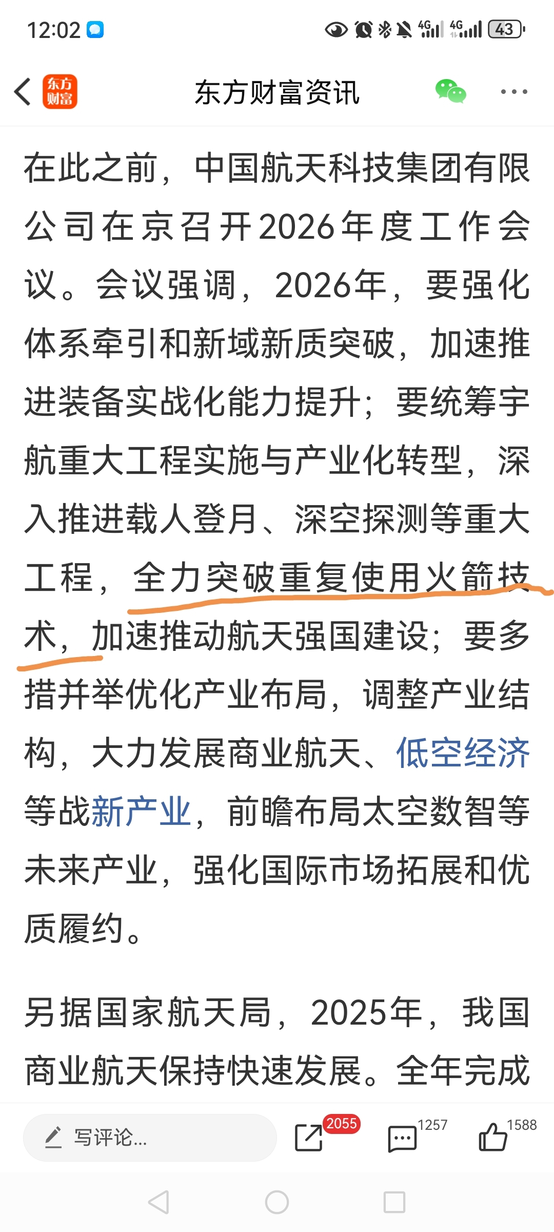 $航天电子(SH600879)$ 看新闻看重点,其他都是套话,这是关键,这是军令状,时间点也很明确了,对外宣传“全力突破”即为内部“保证完成”的意思,这个技术有了,那火箭使劲发呗