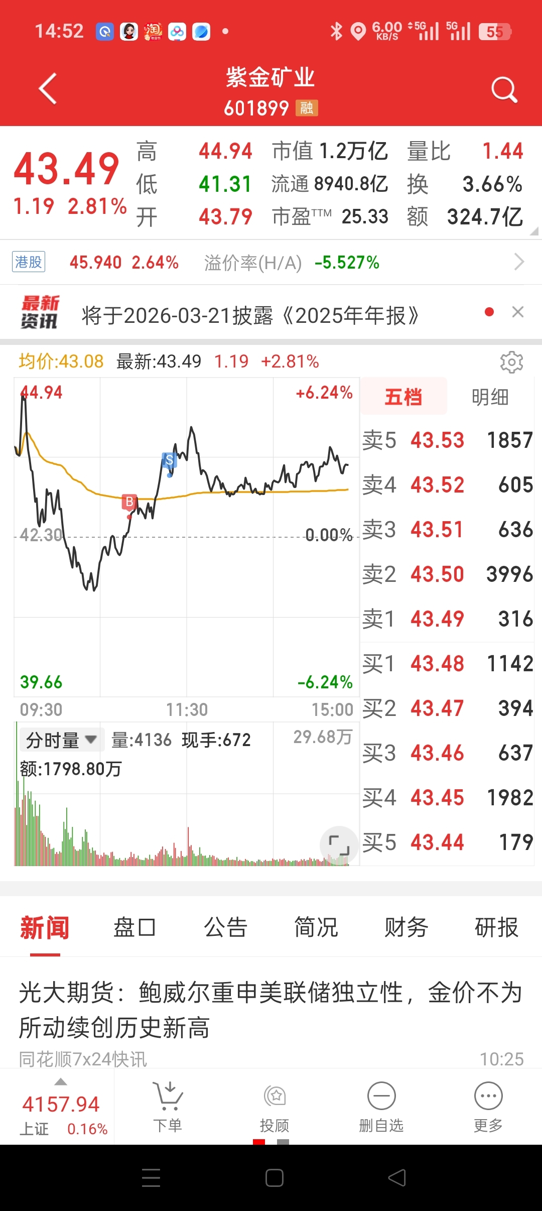 $航天电子(SH600879)$ 大家对航天有没有信心,我今天是靠中金黄金紫金矿业的涨幅来抵航天电子的亏损了