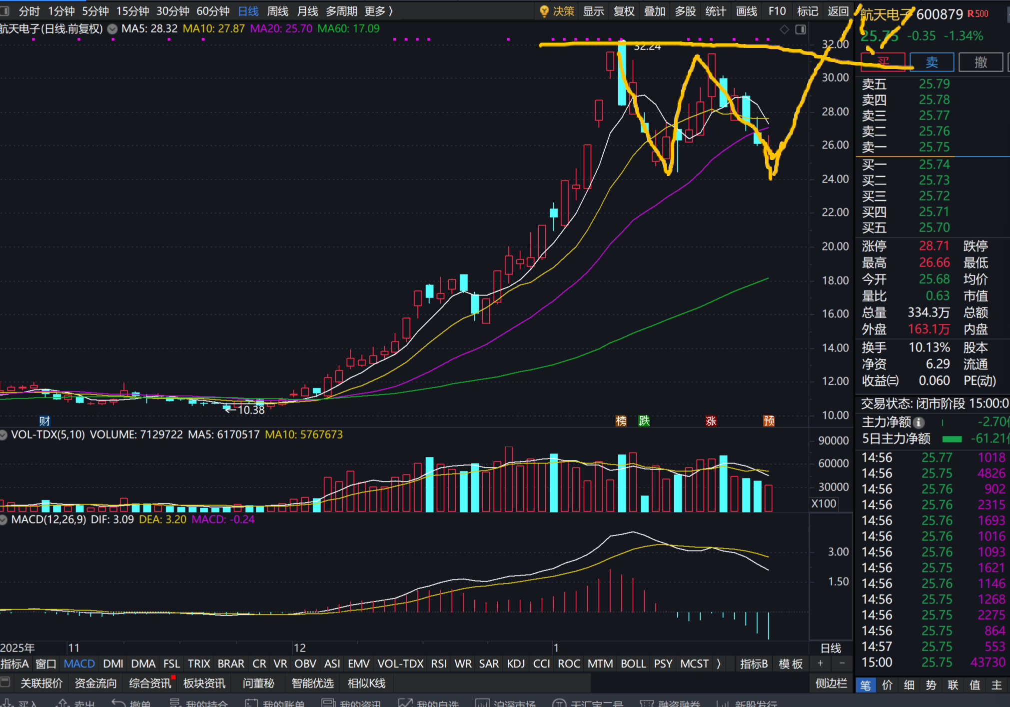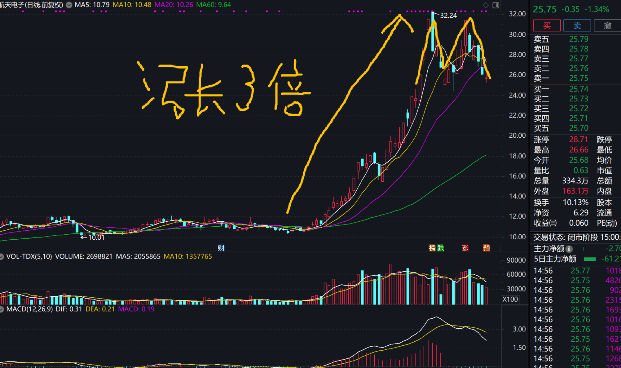 那仅涨了3倍得国企商业航天军工龙头航天电子,是M头呢?见上,还是W底?见下,留给市场吧!