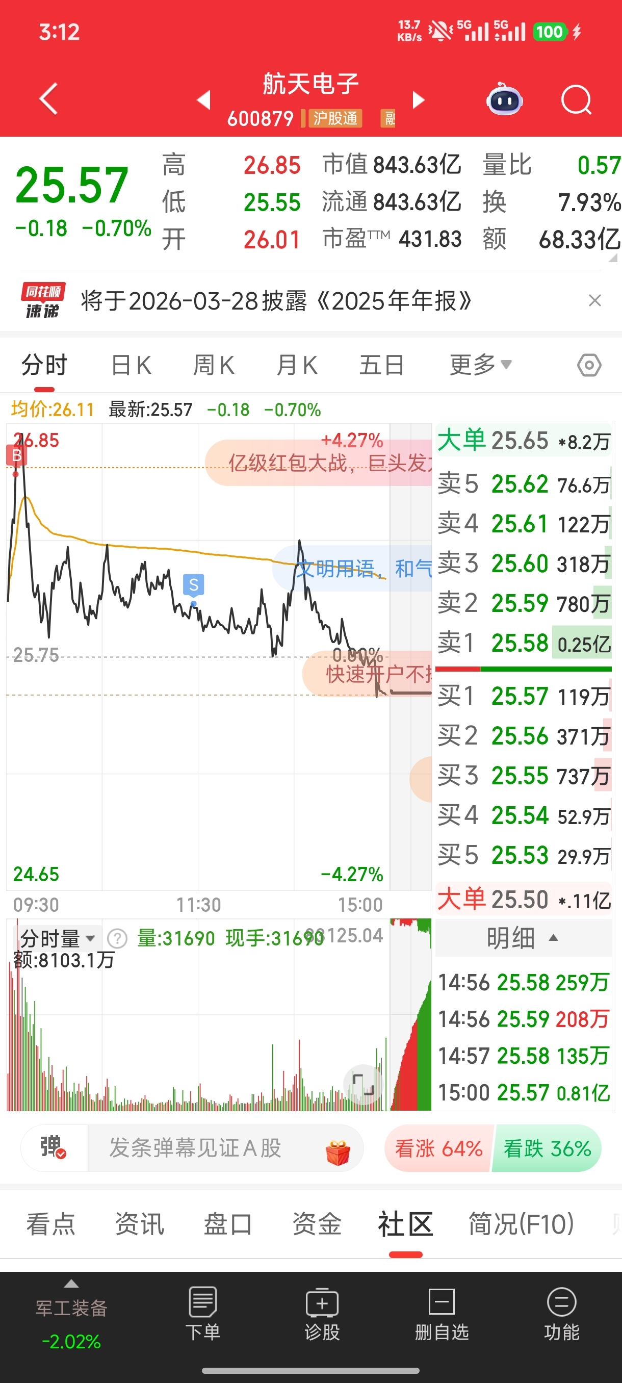 $航天电子(SH600879)$ 说多了都是泪,7000股,做了个反T,人都麻了!这亏4天了,吃肉赶不上,挨揍少不了!
