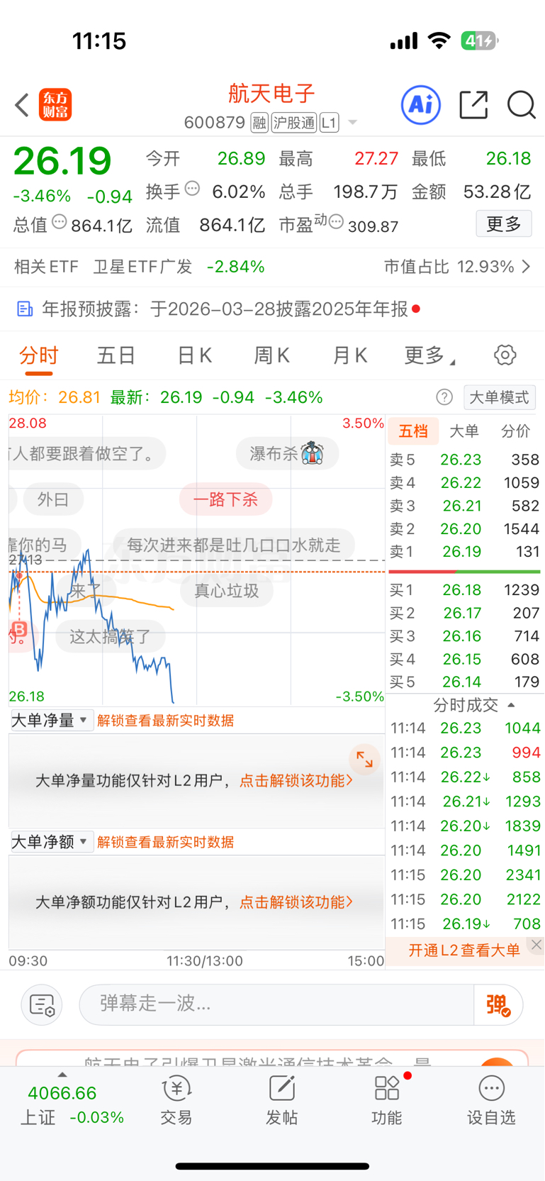 $航天电子(SH600879)$ 本来彻底离场了 今天以为有希望 进来又是这样 彻底不想玩了