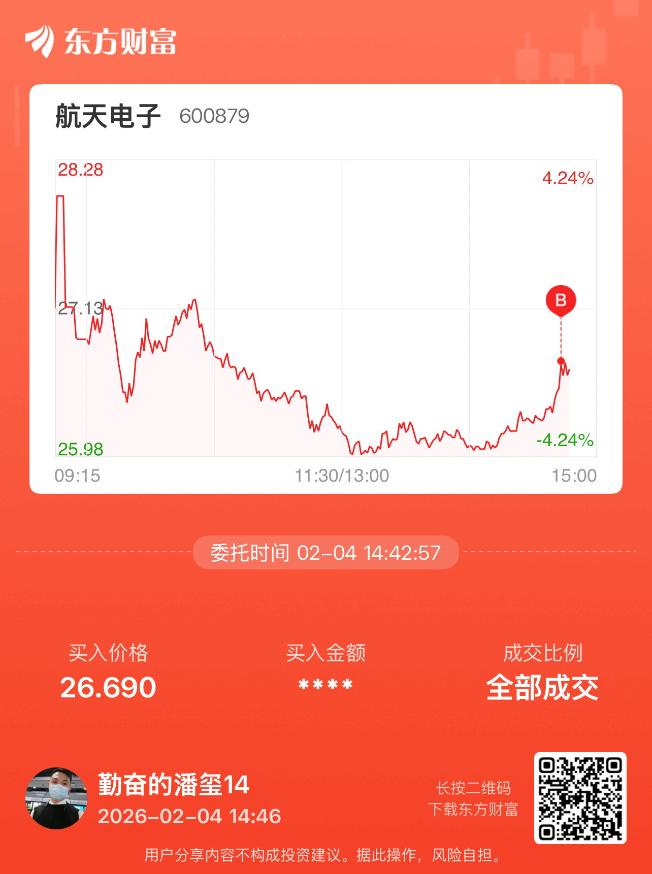 温馨提示: 1.根据《证券法》规定,禁止编造、传播虚假信息或者误导性信息,扰乱证券市场;2.用户在本社区发表的所有资料、言论等仅代表个人观点,与本网站立场无关,不对您构成任何投资建议。用户应基于自己的独立判断,自行决定证券投资并承担相应风险。《东方财富社区管理规定》