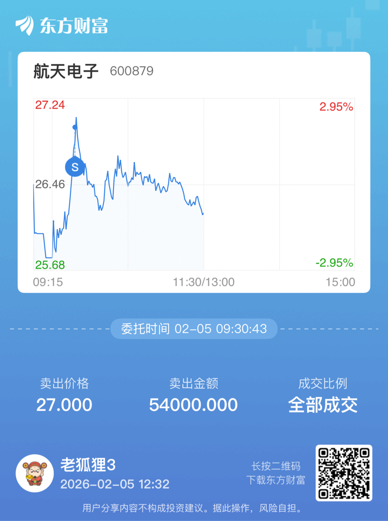 $航天电子(SH600879)$ 今日T的真好,上面说这是股