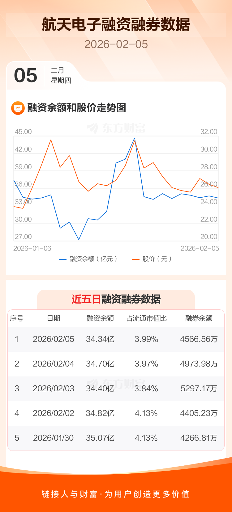 交易所最新数据显示,航天电子于2026年2月5日获融资买入3.78亿元,融资偿还4.14亿元,当日融资净偿还3593.4万元。目前,该股融资余额34.34亿,占流通市值比例为3.99%。