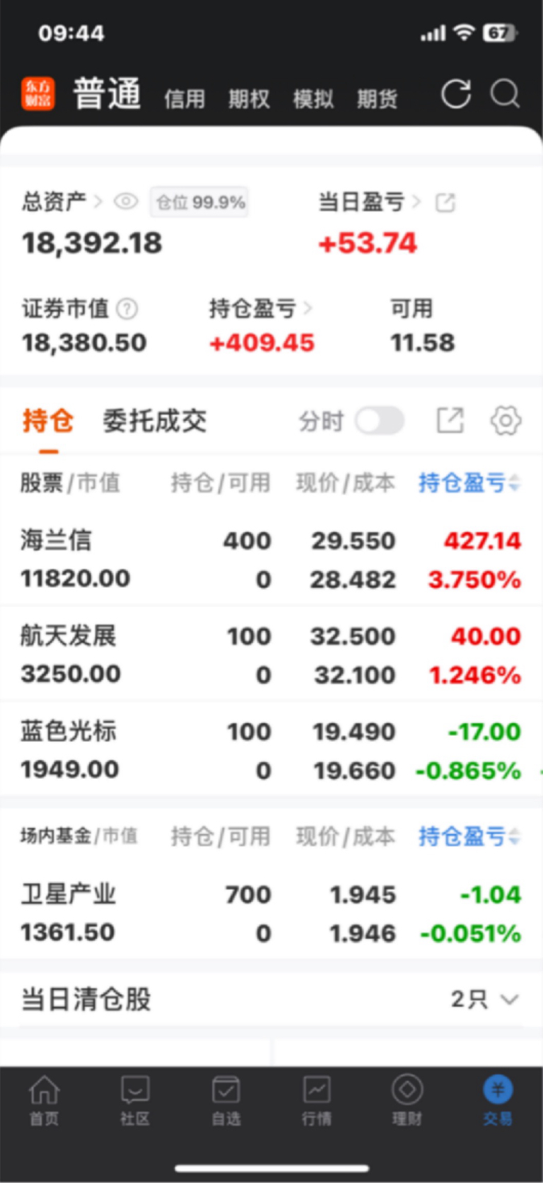 跟主力拼了可惜没拼过收盘亏了1240块,但美国商业航天暴涨8个点卫星通信板块大涨