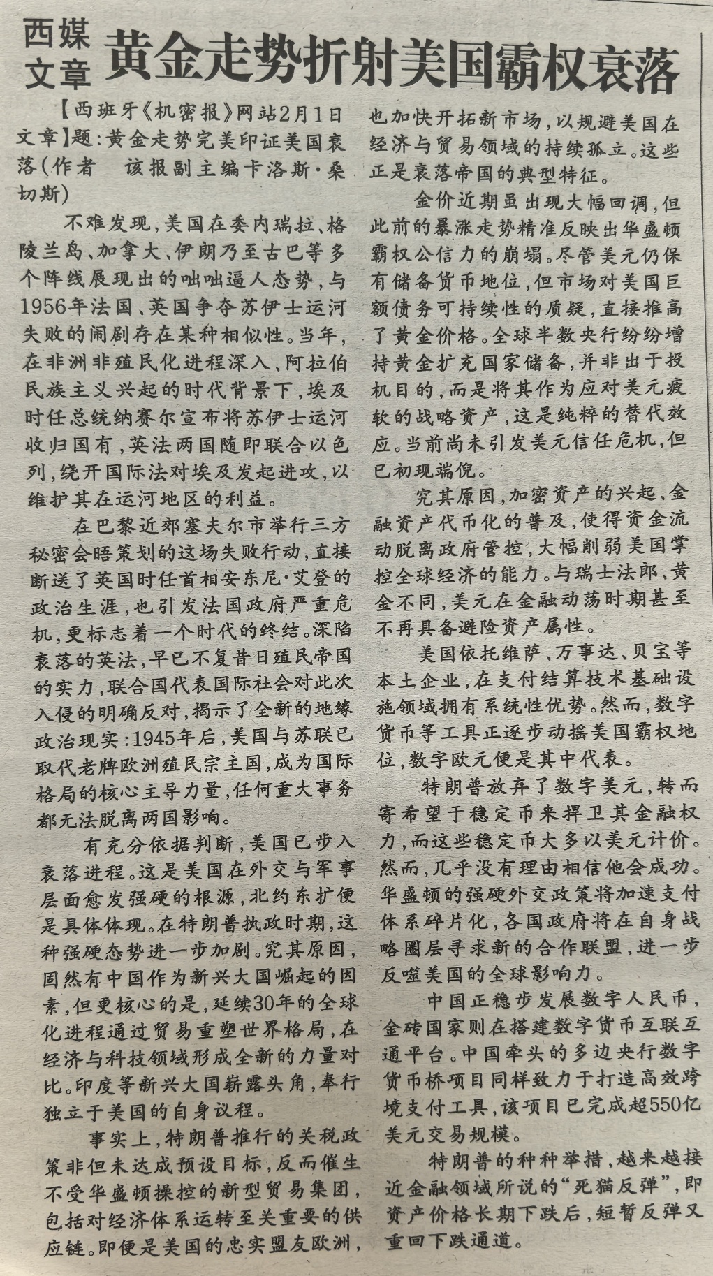 $航天电子(SH600879)$ $中国卫通(SH601698)$ $中国卫星(SH600118)$ 感觉股吧的氛围不健康了,从今天起,我每天带领大家读报纸,用以提振信心,敬请关注。现在是第1条新闻:美霸权主义正在衰落。