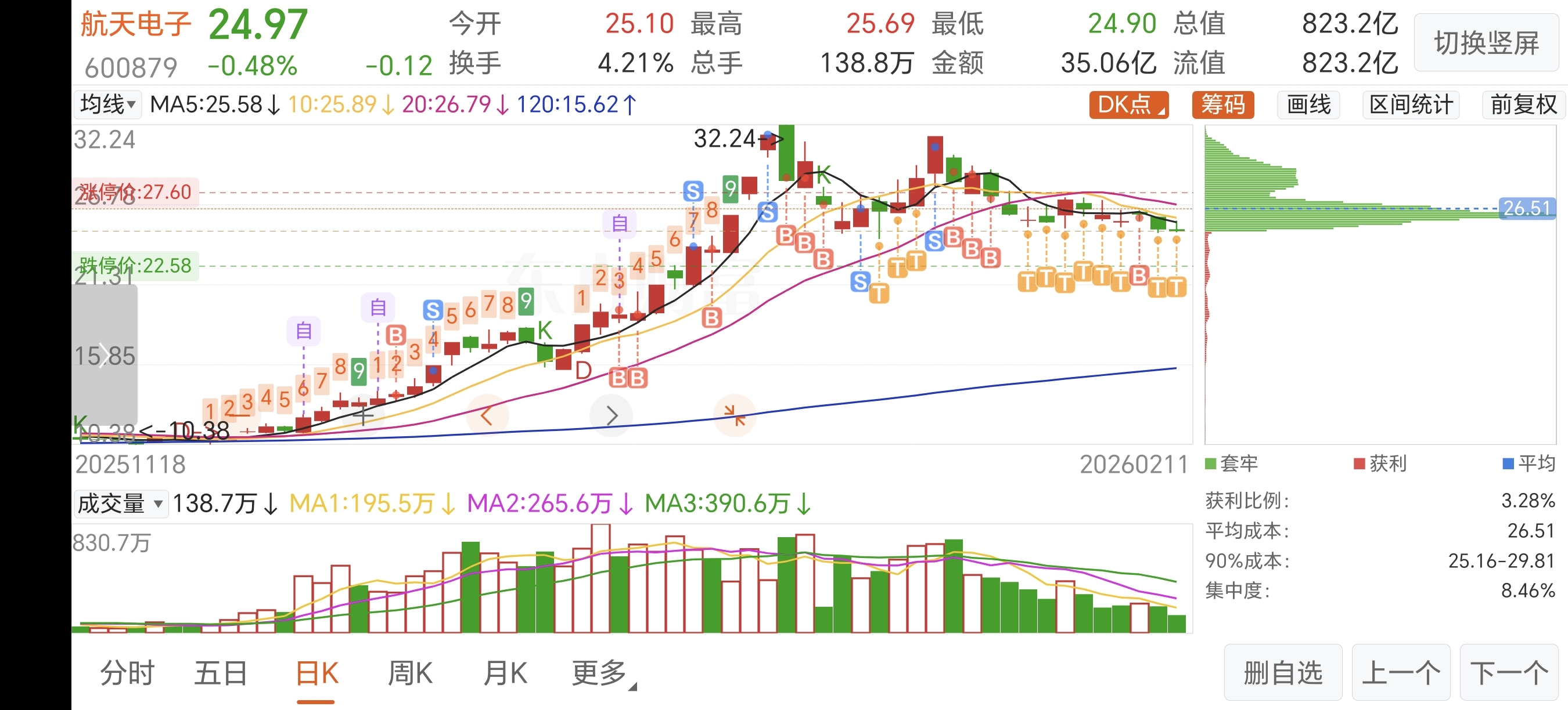 $航天电子(SH600879)$ 获利比例3.28%,到底是谁再卖啊?