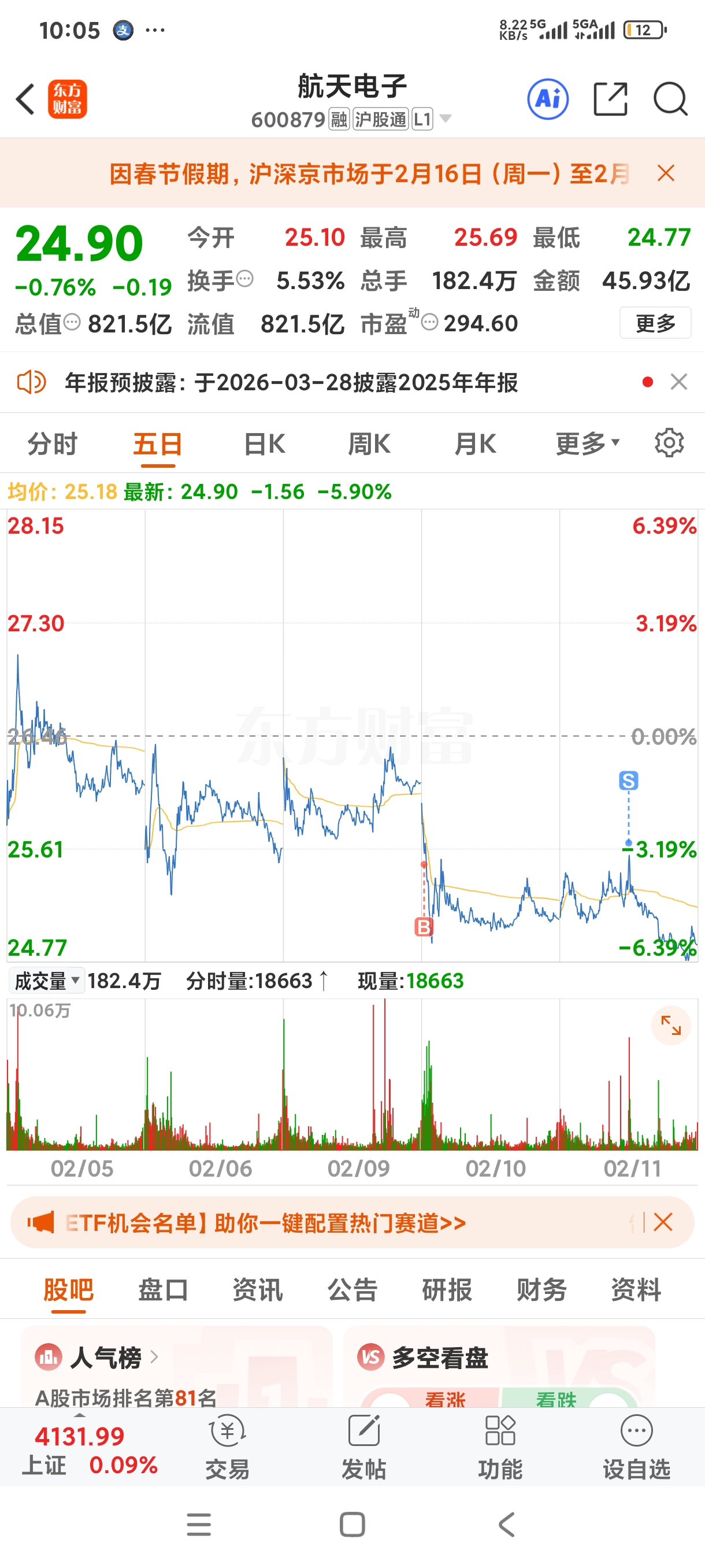 $航天电子(SH600879)$ 没想到这个居然卖到了最高点。