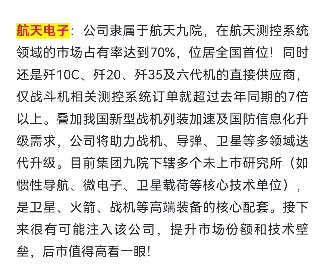 $航天电子(SH600879)$ 这么牛的吗?