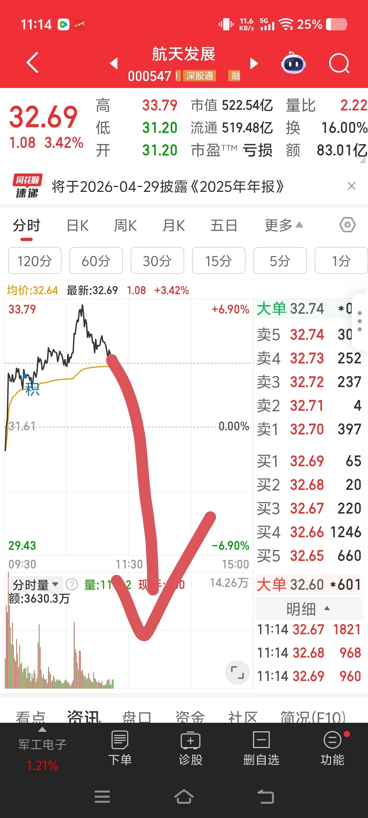 航天发展跟屁虫。今天暴跌