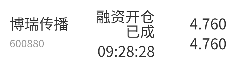 $博瑞传播(SH600880)$ 早盘融资买入,赚认知内的钱,请关注我的老铁参考!!