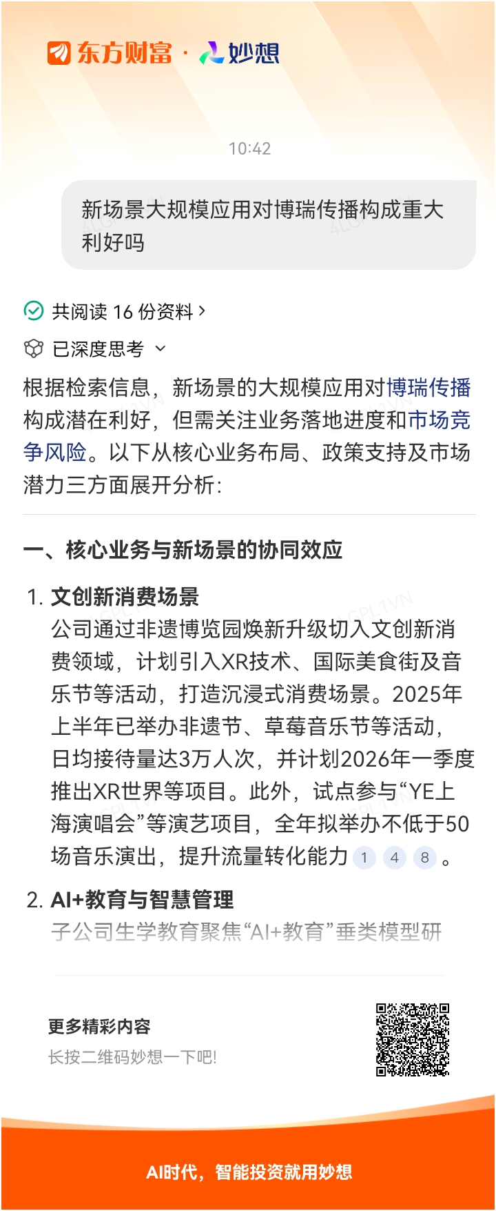 #@妙想,你怎么看?# 妙想一下:新场景大规模应用对博瑞传播构成重大利好吗